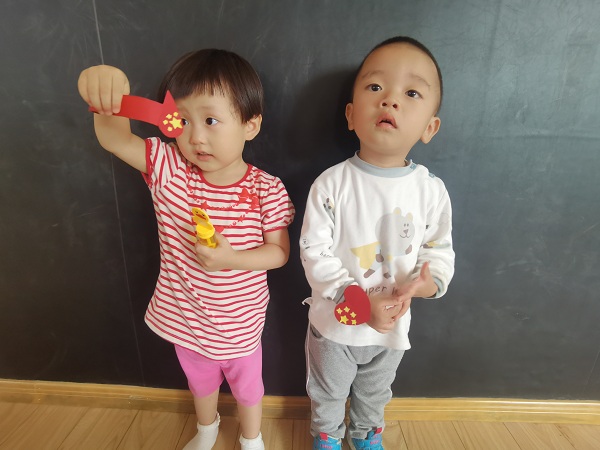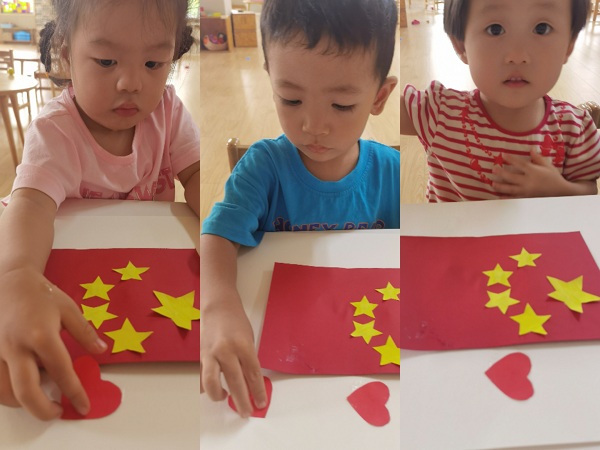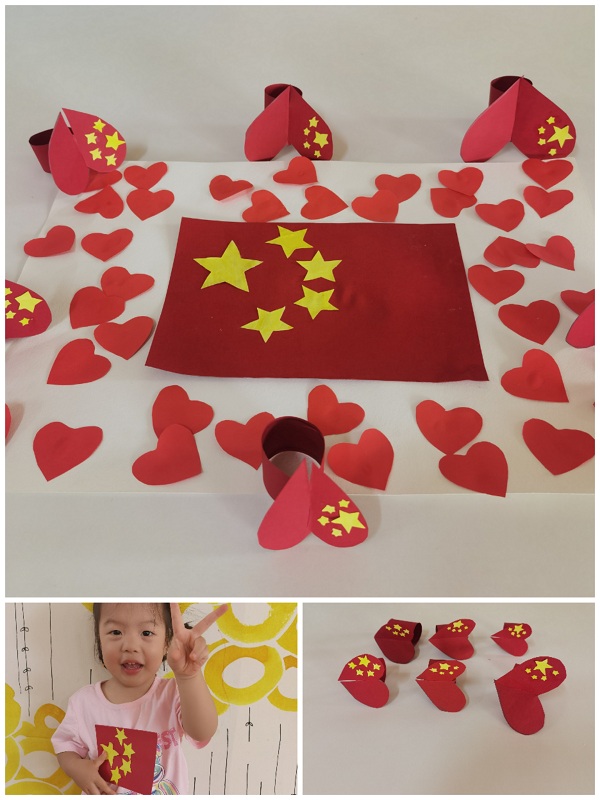 孩子们用手工制作的方式表达对祖国的爱,炙热的爱心环绕鲜红的旗帜,将爱国主义的种子播撒在孩子们心中!