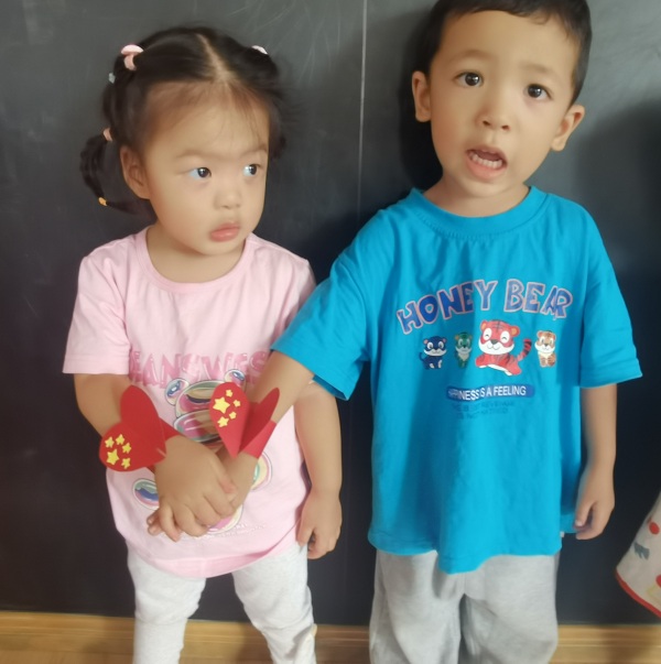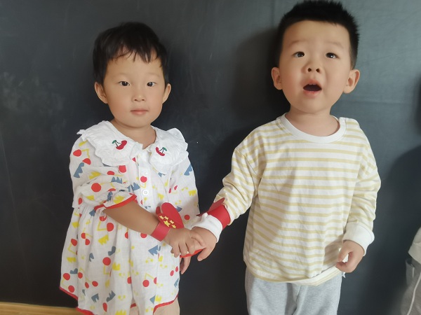 红色的手环与金色的星星交相辉映,孩子们戴着手环、牵起双手,幸福、和谐的嬉戏、玩闹,这是对祖国妈妈最好的生日礼物,也在孩子们心中种下了文明、友善、和谐的种子!