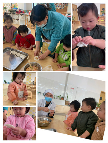 在我们托管中心一日吃三餐的宝贝们,冬至这天,水饺必须给安排上。一大早,膳食老师黄老师,就在厨房里忙活着炖肉馅儿、擀面皮。乐宝是一只嗅觉很灵敏的小馋猫,由于她最小(1.5岁),喜欢自由探索,在其他宝贝们在教课老师带领下跳操环节时,这只小馋猫站在厨房门外一直在大喊“好香”“黄老师做好吃的,好香”。