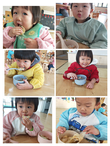 “emmia.enmia.enmia真好吃”中午,吃到自己包得饺子的孩子们吃的格外香甜。
