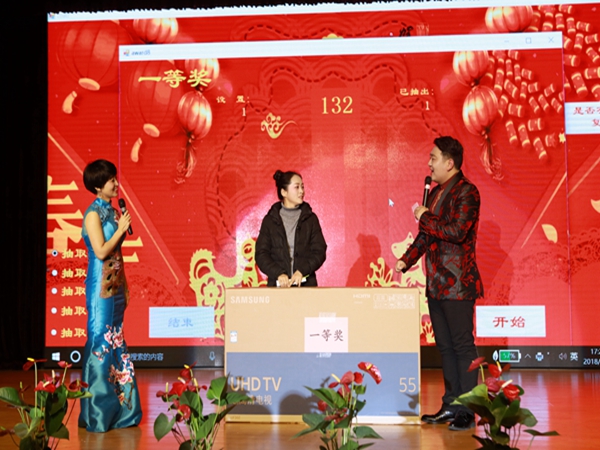 节目表演过程中,还不时穿插着有趣的游戏环节和激动人心的抽奖环节。校工会精心准备了55寸三星液晶彩电、10台干衣机、50台微波炉及两百份手工皂礼盒作为奖品。每轮的抽奖环节高潮迭起,现场惊喜不断,欢呼声连连。