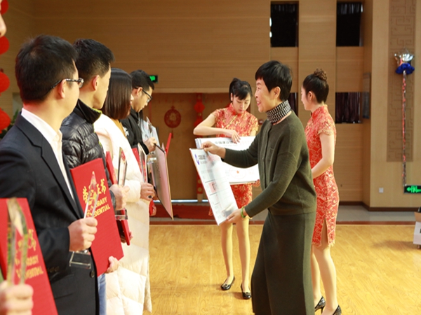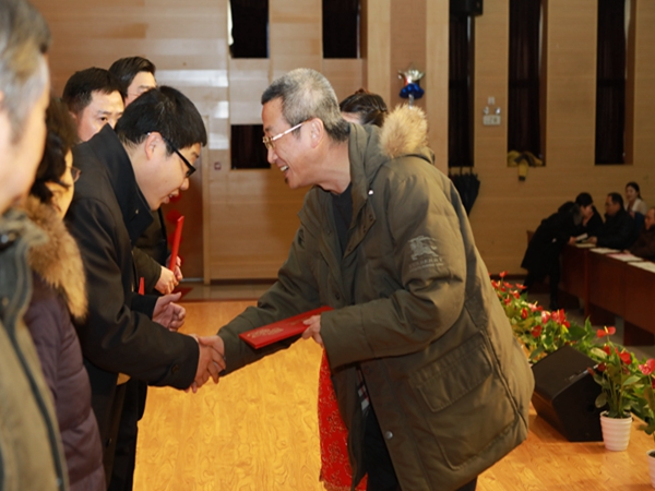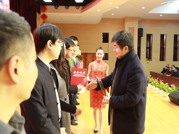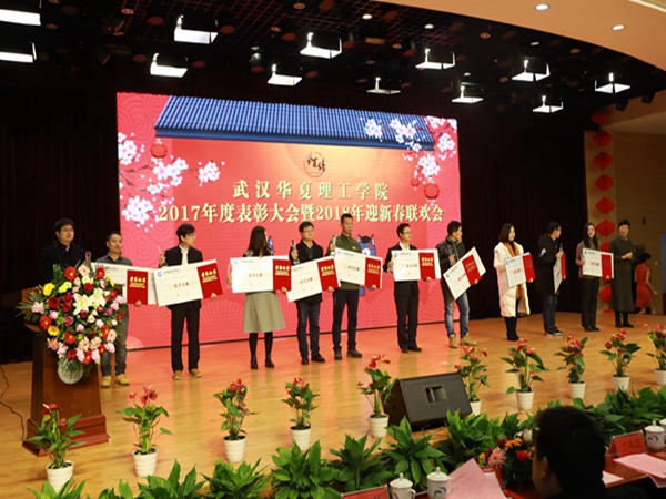 常务副校长杜辉宣读《关于表彰2017年度先进单位及优秀员工的决定》,集团领导、校领导分别为获奖先进单位及优秀员工颁奖。