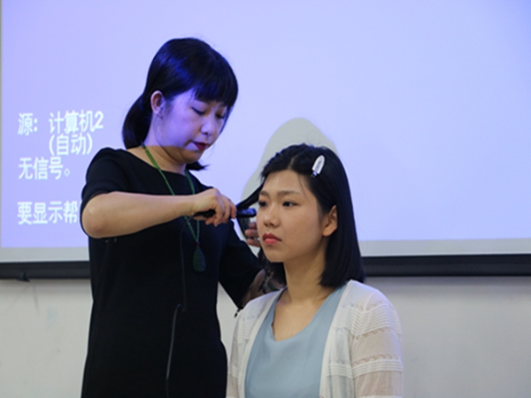 卓玛女士则从化妆的意义、化妆的重要性、常用的化妆品、化妆流程等四个方面,理论结合实操为大家讲解化妆。互动环节中,她以现场观众董科卉老师为模特亲自示范化妆。她从基础护肤开始,到粉底、定妆、描眉等多个流程,一边操作一边解读要点。卓玛老师还介绍了自己独特的以口红修饰面部、以口红充当腮红的化妆实用小技巧,在卓玛老师如有神奇魔力的双手“施法”下,模特的妆容清新淡雅,气质焕然一新,赢得在场老师们的阵阵掌声。