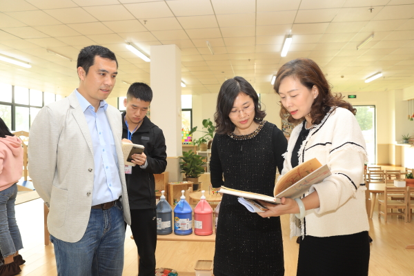 盖松梅仔细考察了托管中心的学习区、玩具区、生活区、休息区的设备设施,听取了梅燕对托管中心的教育理念、管理制度、运营情况等各方面情况的汇报。考察过程中,她对园区先进的教育理念、严谨的规章制度、科学的分区布置、完备的教学设施、安全的教具材料等给予了高度评价。