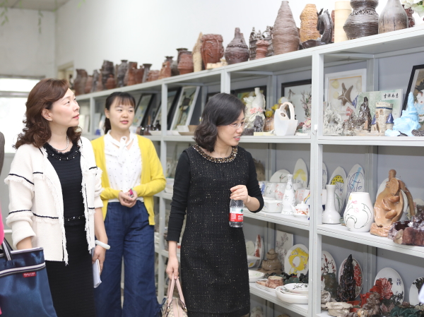 随后,盖松梅一行还到艺术设计与传媒学院,参观了陶艺工作室、摄影室,考察了该院的“诚信格子铺”、“生活美加油站”,了解了学校为教职工定制的“六号课堂”、“清雅市集”、“妈咪歇脚站”等公益项目。