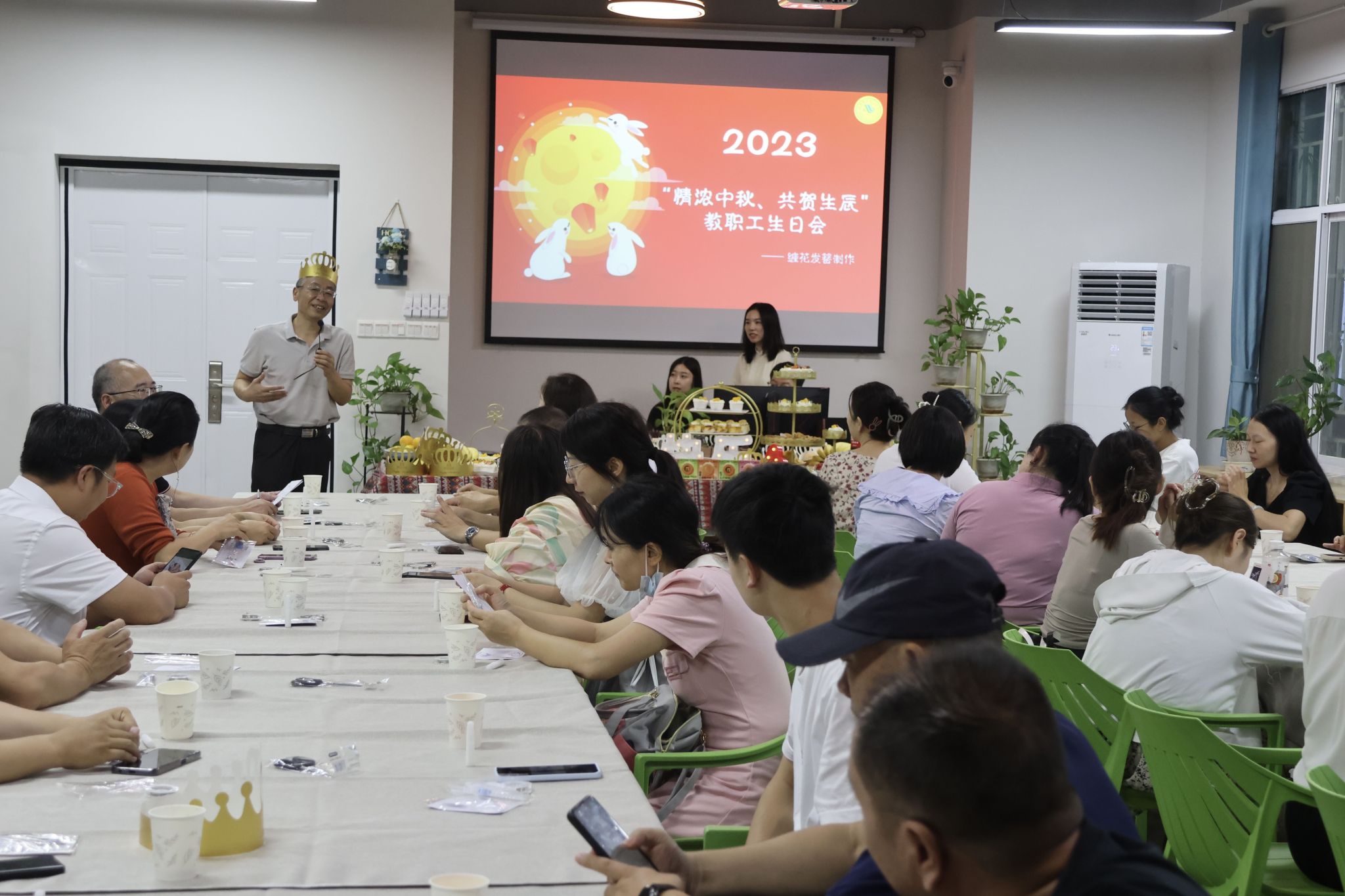 活动由学校副校长、工会主席丁成忠主持,他首先对各位寿星和老师的到来表示热烈欢迎,同时对老师们近来开学紧张的工作表达了感谢和问候。生日会特别邀请学校党委副书记、副校长李海民作为寿星代表给大家送上了美好的祝福,随后带领大家一起同唱生日歌,许愿、吹蜡烛,现场洋溢着温馨欢乐的气氛。伴随着快乐的生日歌声,一起品尝着甜美的蛋糕,每个人脸上幸福的笑容。