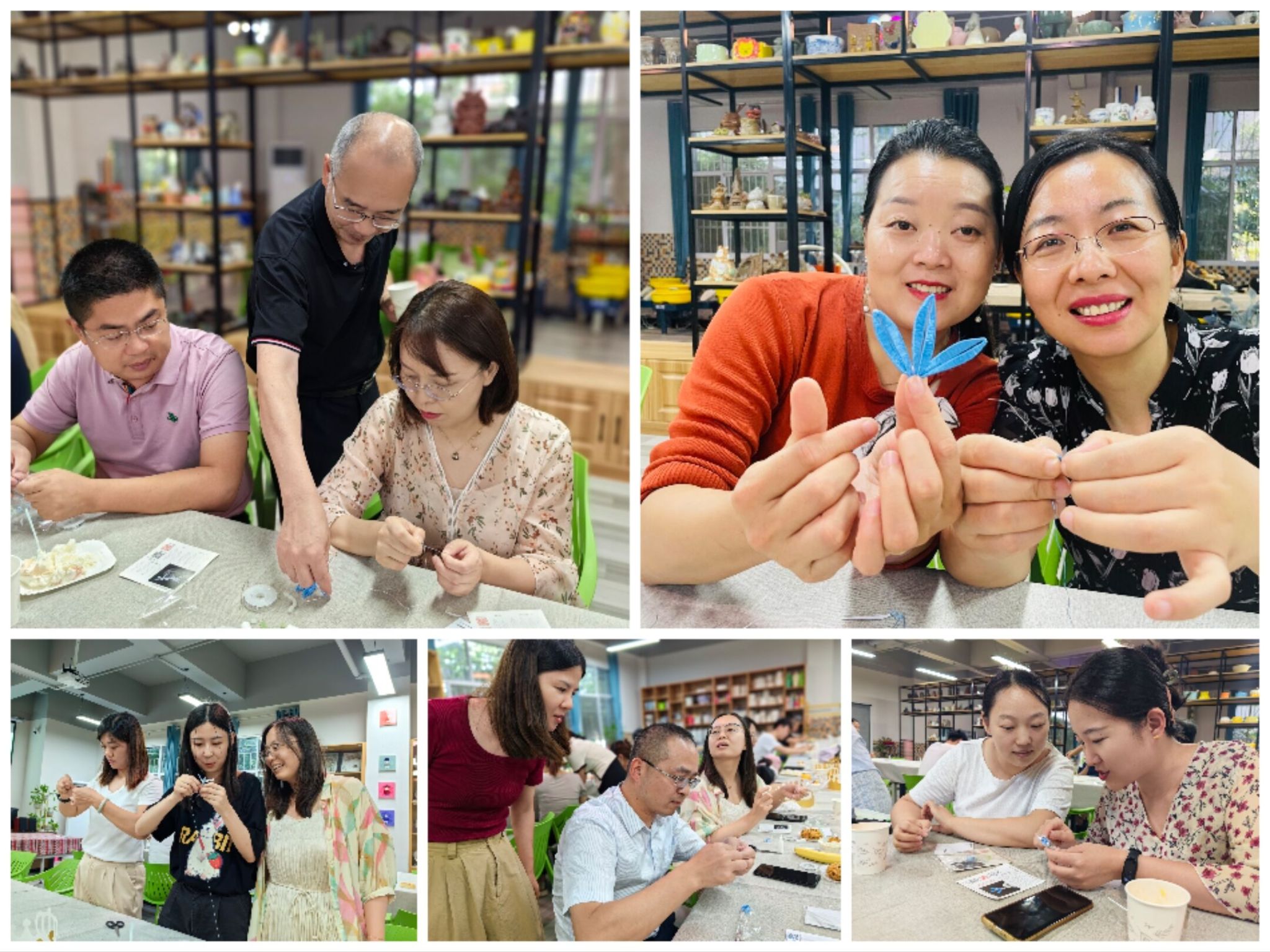 为了提升教职工的职业幸福感,让教职工们在忙碌的工作之余,感受大家庭的温暖,留下一份甜蜜幸福的回忆。9月19日下午,校工会在陶艺制作实训室811举办了“情浓中秋 共贺生辰”教职工生日会,邀请寿星以及有意愿参加的教职工一起来庆祝生日并欢度中秋佳节。现场为大家精心准备了各式蛋糕、月饼,并邀请了艺术学院老师来教大家制作发簪缠花,整个活动现场其乐融融,热闹非凡。