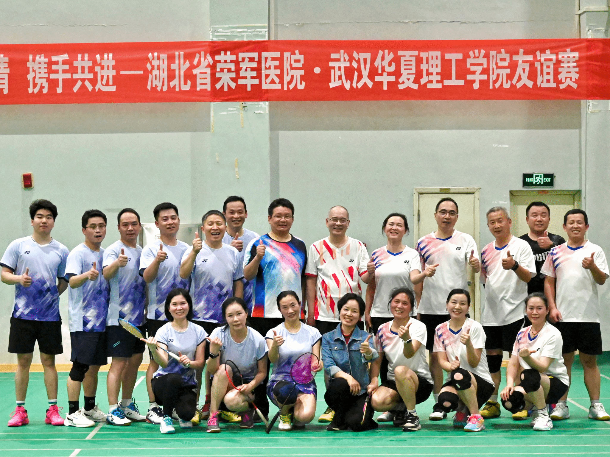 3 月 25 日下午,一场精彩纷呈的羽毛球友谊赛在beat365羽毛球馆激情上演,对阵双方为beat365教职工羽毛球队和湖北省荣军医院羽毛球队。这场比赛不仅为双方搭建起交流切磋的平台,更进一步增进了学校与医院之间的深厚情谊,同时也为学校在合格评估进程中展现积极向上的校园活力添上了生动注脚。