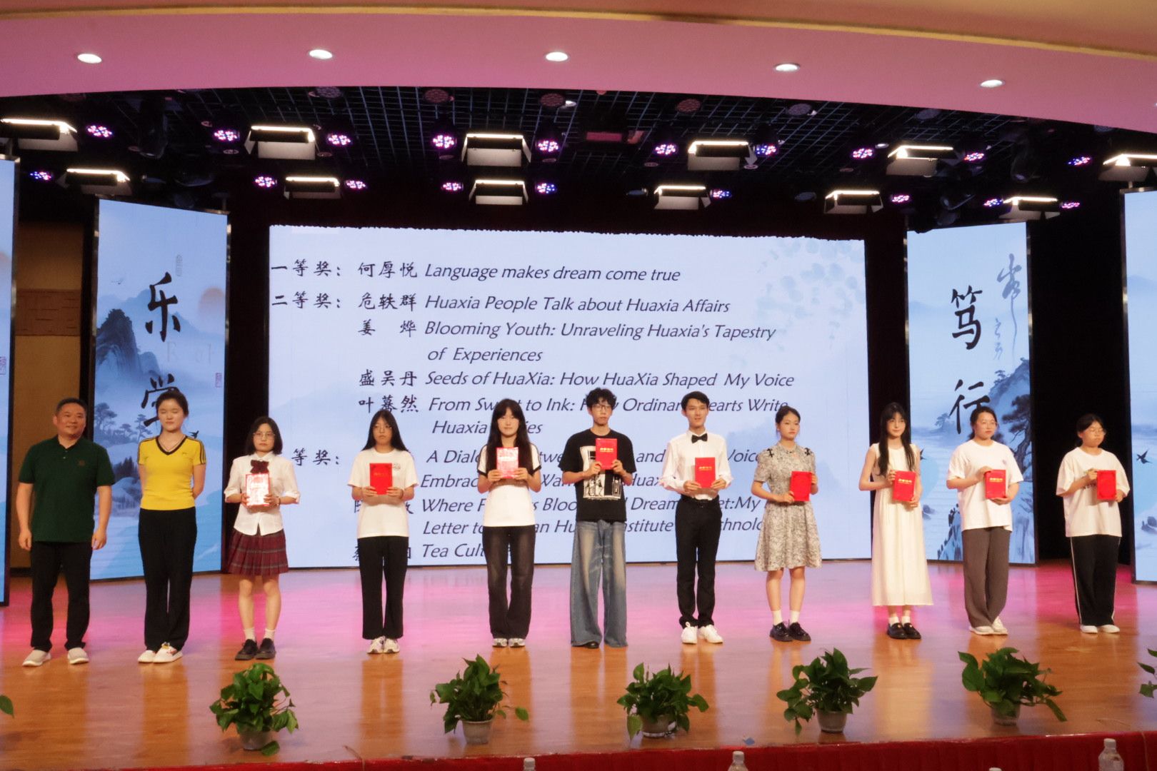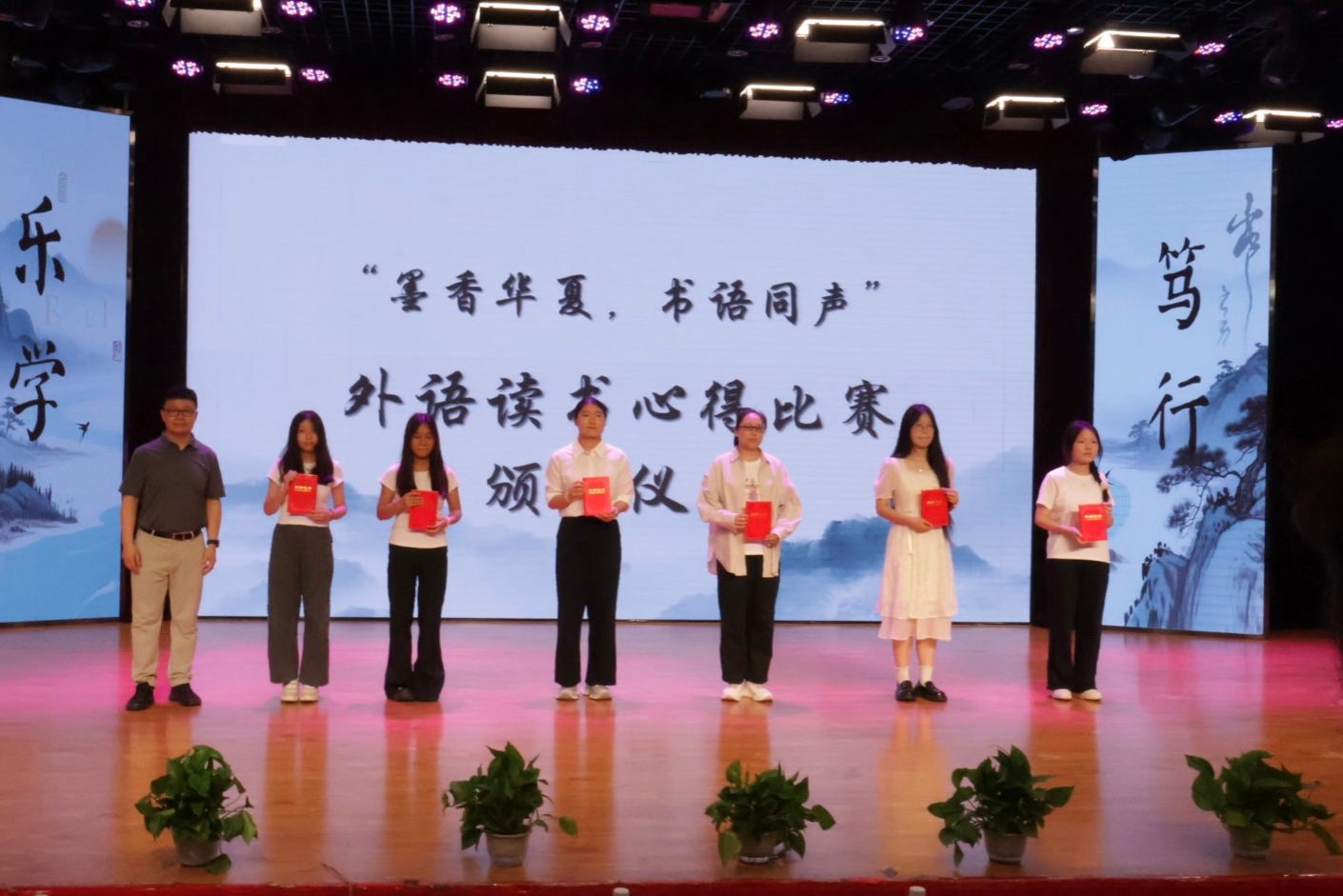颁奖环节,主持人公布了“Spark your dream”外语歌曲比赛、“外韵传情,华彩同鸣”外语演讲比赛、“语韵无界,音梦同频”外语配音比赛、“墨香华夏,书语同声”外语读书心得比赛以及“校友情深,语韵承心”外语微视频作品征集大赛的获奖名单。与会嘉宾分别为获奖选手颁奖。