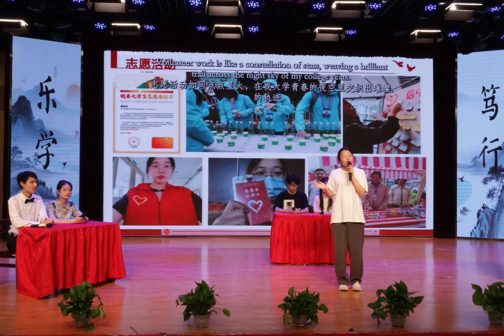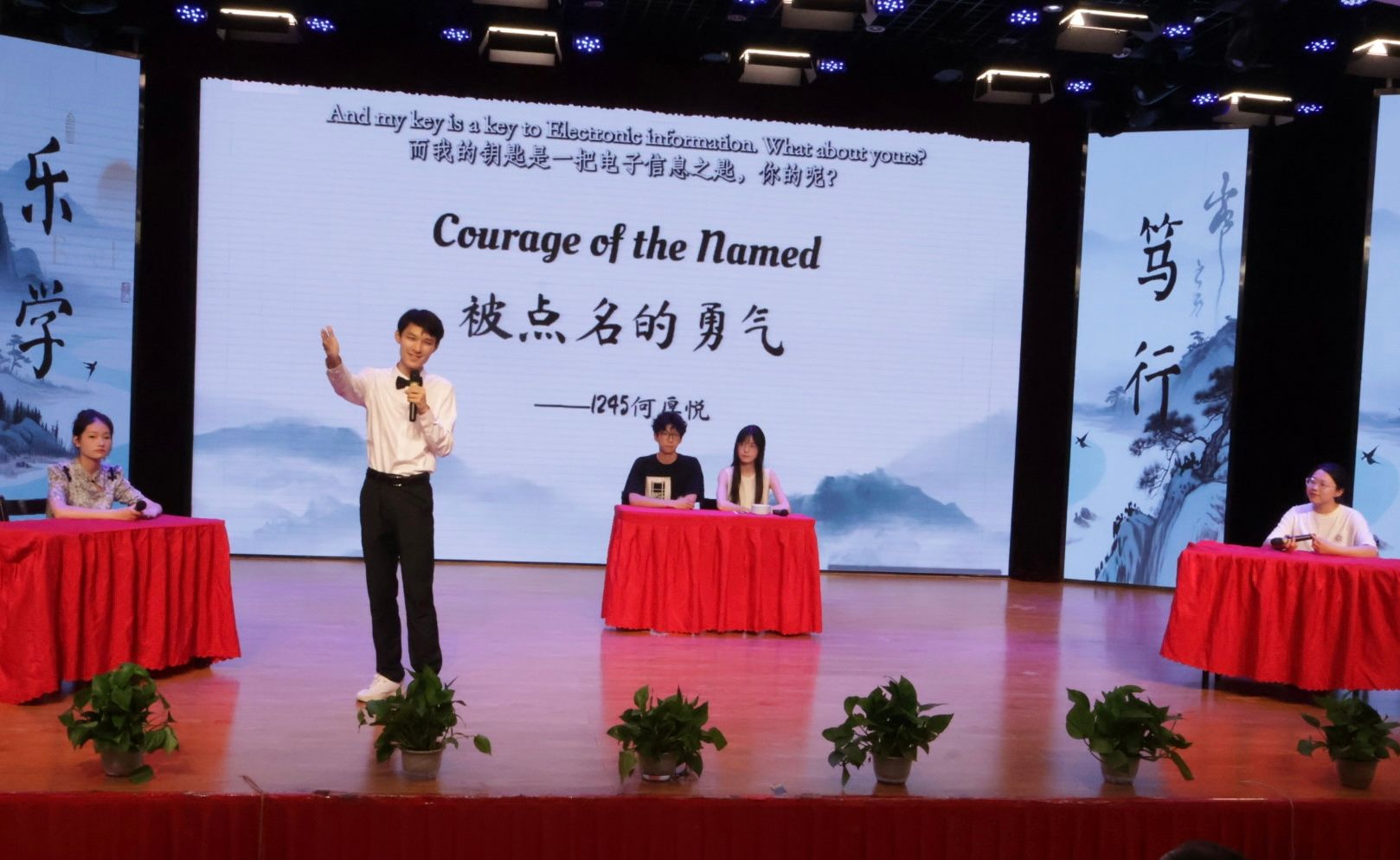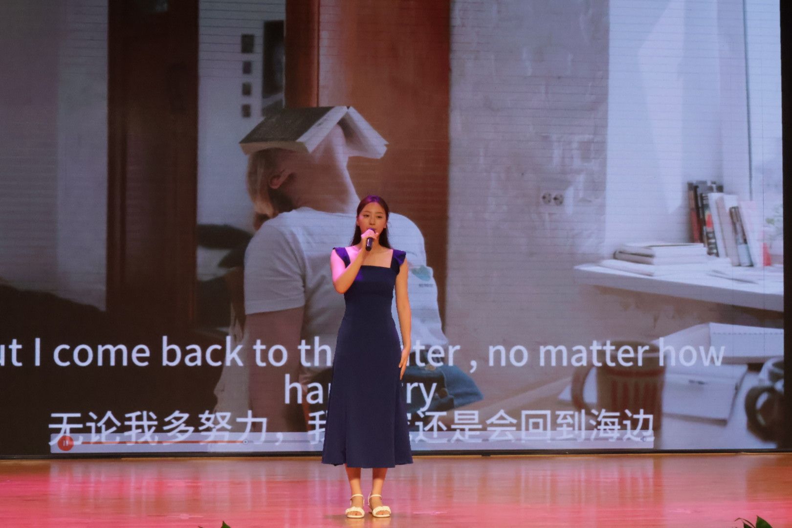 一段由选手演奏的钢琴曲《一步之遥》,引出了读书心得分享展示环节。来自信息工程学院和外国语学院的五位学子用英语展示了自己读《闻香识女人》《我与地坛》《红楼梦》等经典书籍的心得。他们深入的思考和独到的见解,让在场观众对经典文学作品有了新的认识和理解。