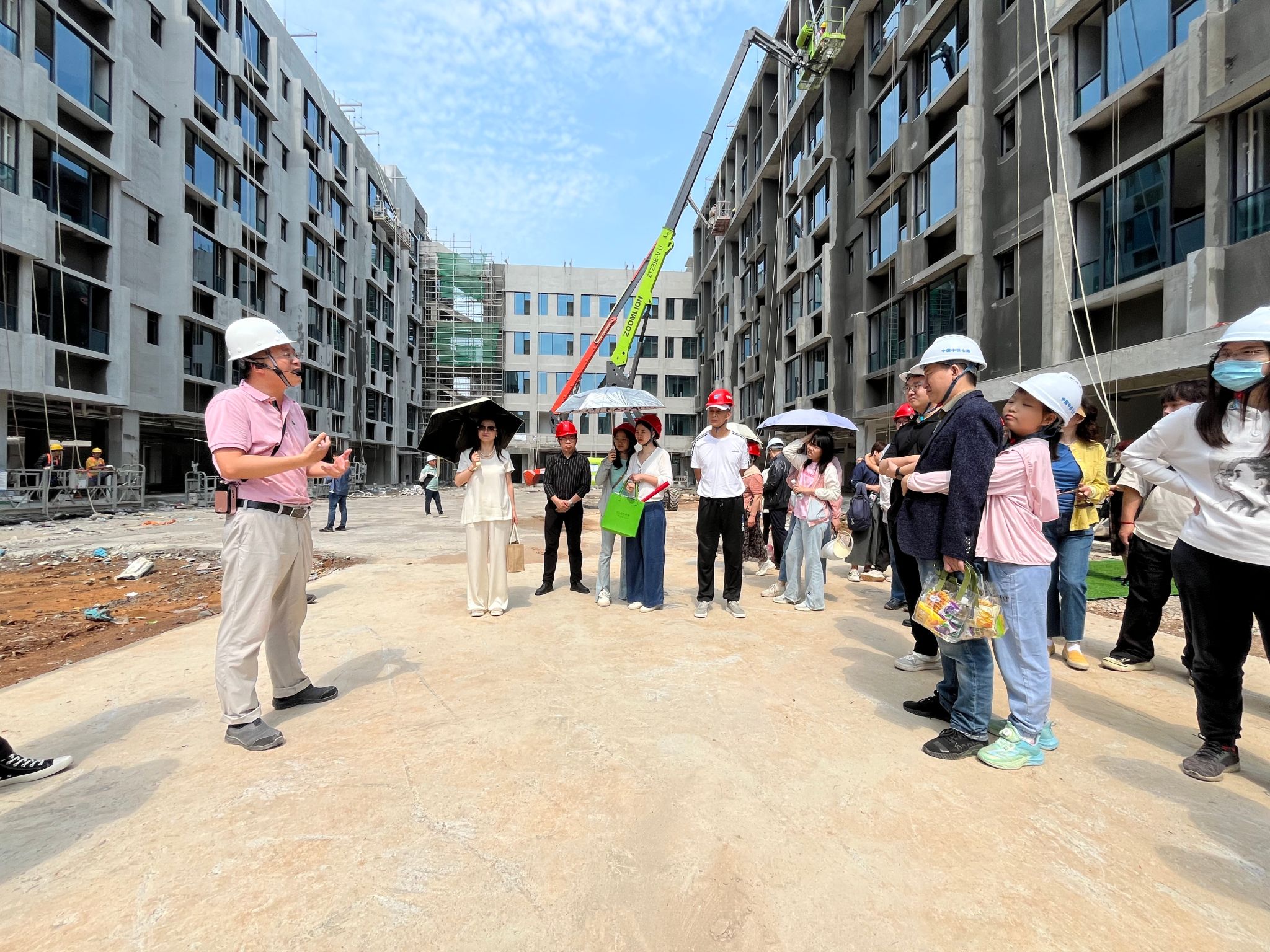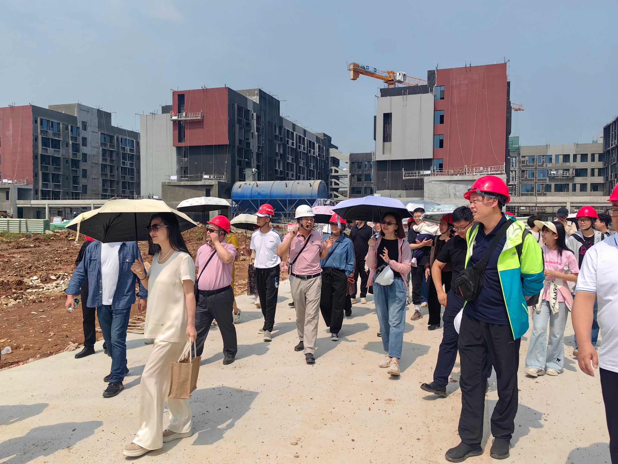 活动伊始,副校长、梧桐湖校区管理委员会主任胡水兵带领师生深入建设现场,详细介绍了校区的整体规划、功能布局及工程进展。他重点讲解了教学区、体育馆、学生活动中心、食堂、实验楼及学生公寓等核心区域的规划理念与建设情况,并就师生关心的通勤、住宿及后勤保障等问题进行了细致解答。胡水兵表示,梧桐湖校区是学校未来发展的重要支撑,学校将高标准推进建设,为师生创造更优质的教学与生活环境。