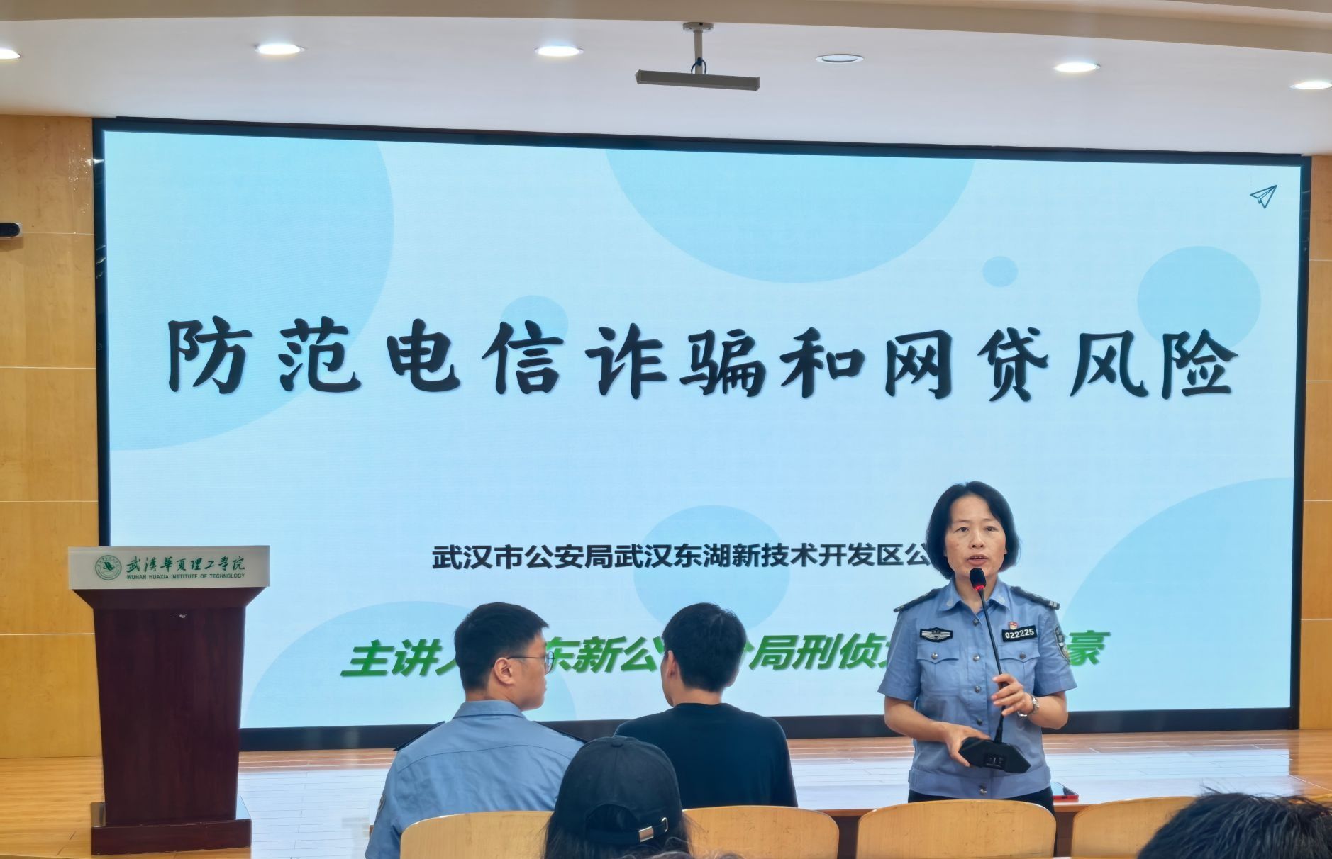 为切实增强在校师生对电信网络诈骗的识别、防范与抵制能力,保障师生财产安全,5月28日晚,学校邀请关南派出所副所长黄惠芬、东湖高新区公安分局刑侦大队警官张书豪,为全校师生代表开展防范电信诈骗和网贷风险专题讲座。