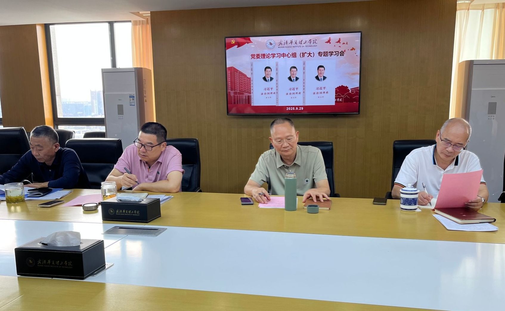 9月29日上午,学校党委理论中心组召开《习近平谈治国理政》第五卷专题学习会。党委书记丁德智主持会议。