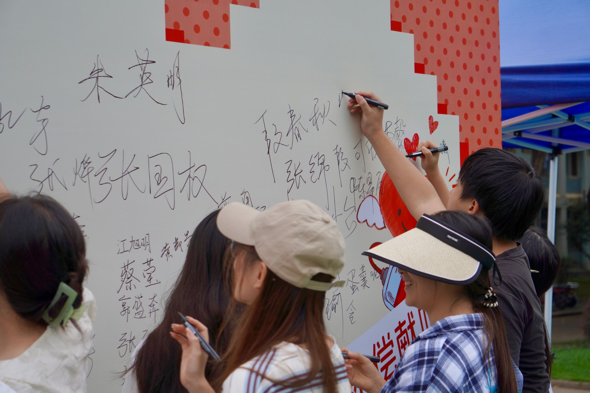 在献血点,同学们积极响应,有序登上献血车,以热血践行青春担当,用实际行动书写新时代青年的责任与大爱。