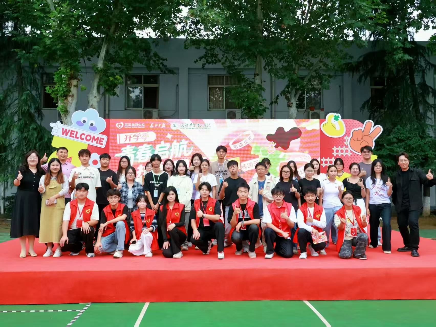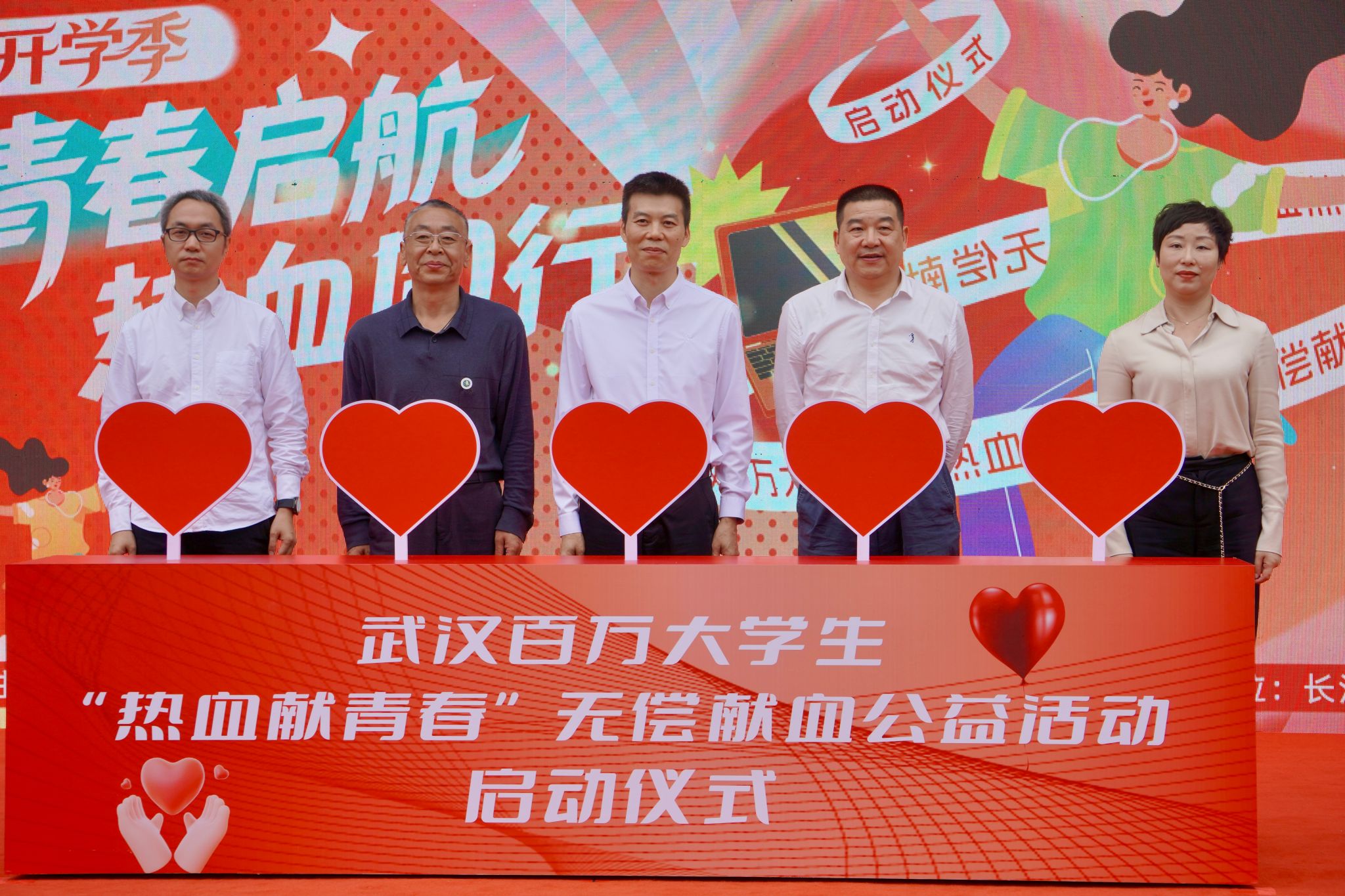 丁德智、李海民、杨文波、杜思颖、王其恒共同将鲜红的爱心钥匙插入启动台,为本次无偿献血公益活动揭幕,宣告这场承载生命希望与青春温度的校园公益盛事正式启航。