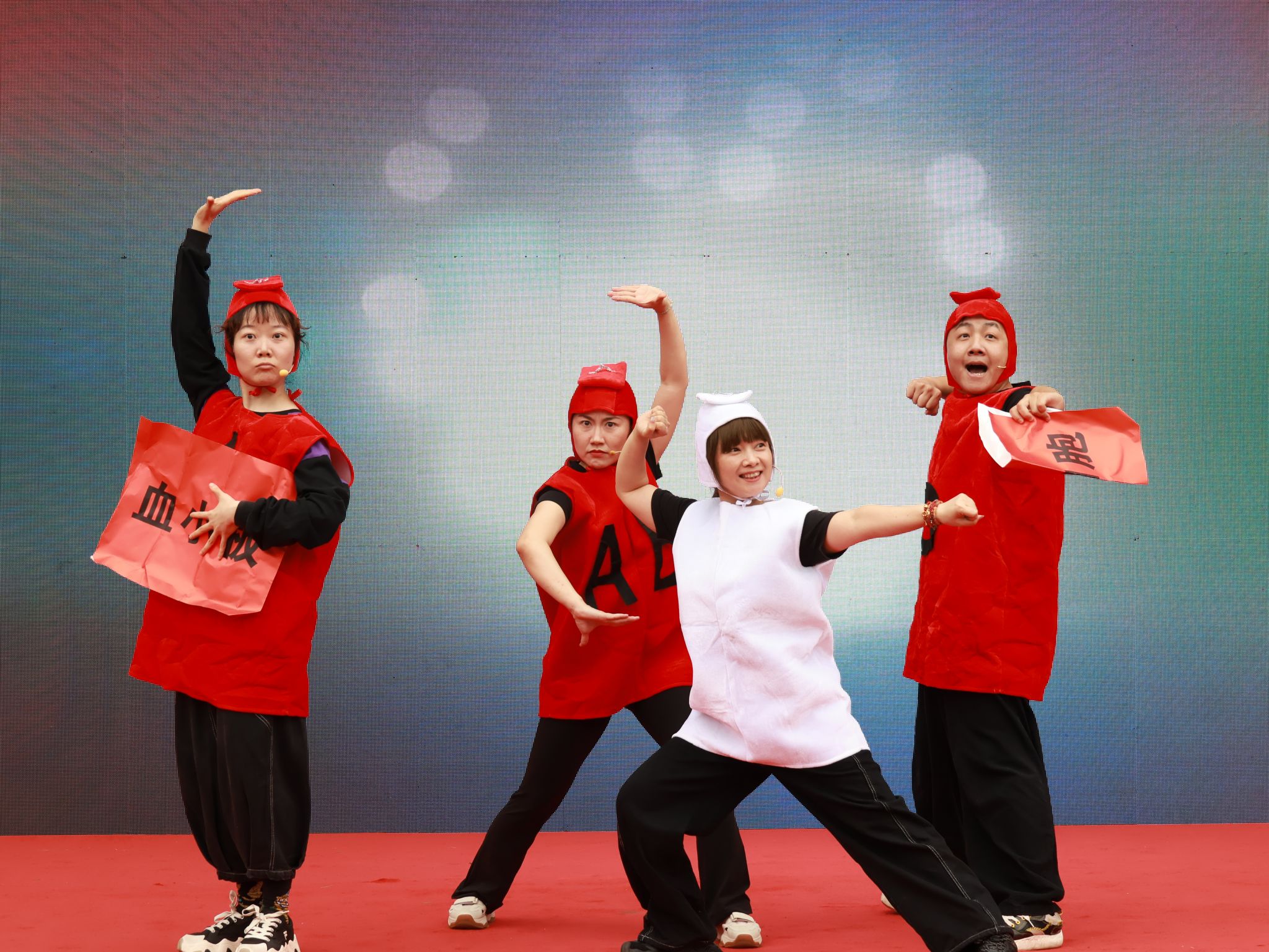 随后,一场以血型为主题的创意情景剧精彩上演。演员们化身A型、B型、AB型、O型“血宝宝”,通过生动活泼的表演,普及血液知识,传递献血意义,让观众在欢声笑语中收获科普,深化认知。