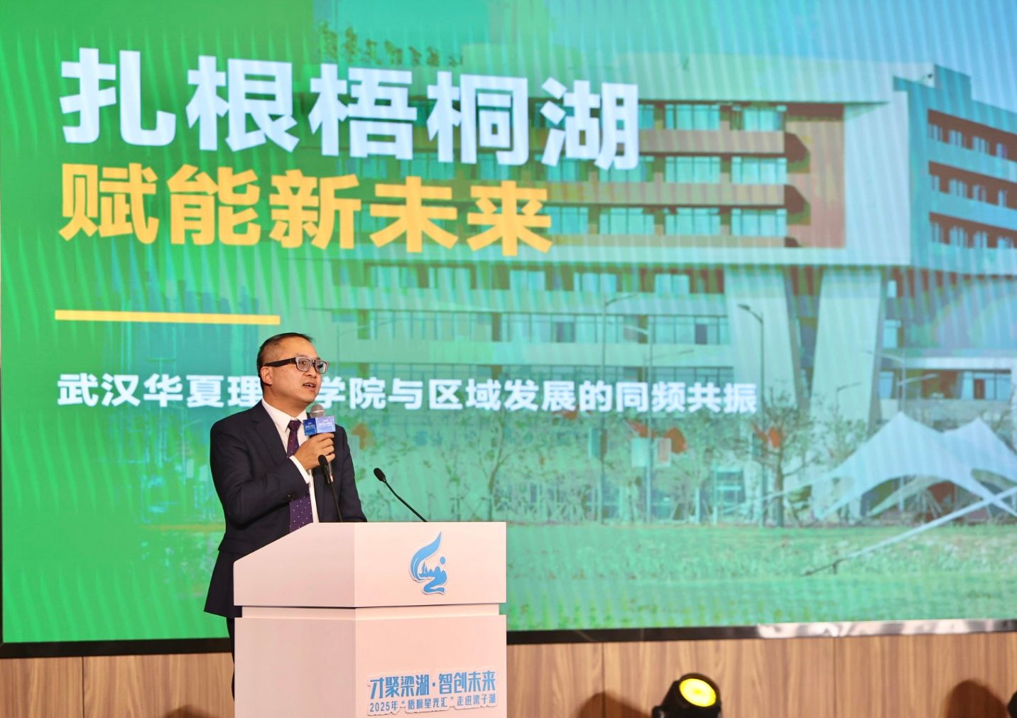 在随后进行的人才分享环节,胡水兵围绕“扎根梧桐湖,赋能新未来:beat365官方网站与区域发展的同频共振”的主题,从“怎么想”“怎么做”“未来是怎样”三个方面向与会领导、嘉宾报告了beat365官方网站与鄂州结缘的历程、校区建设成果及未来规划。