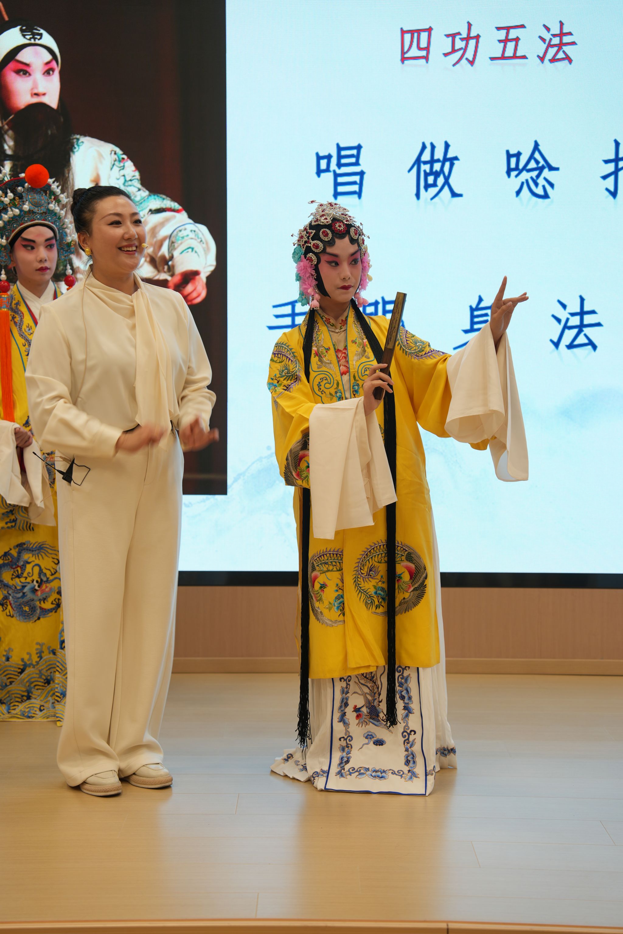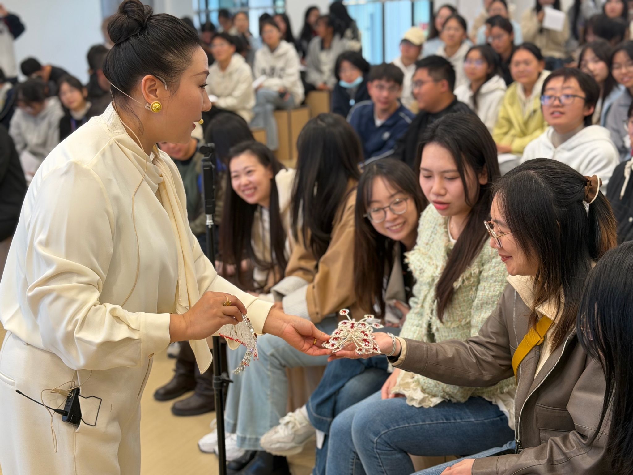 互动环节将现场气氛推向高潮,同学们纷纷上台试穿戏服、学习动作,在亲身体验中感受传统艺术的魅力,整场活动掌声不断。