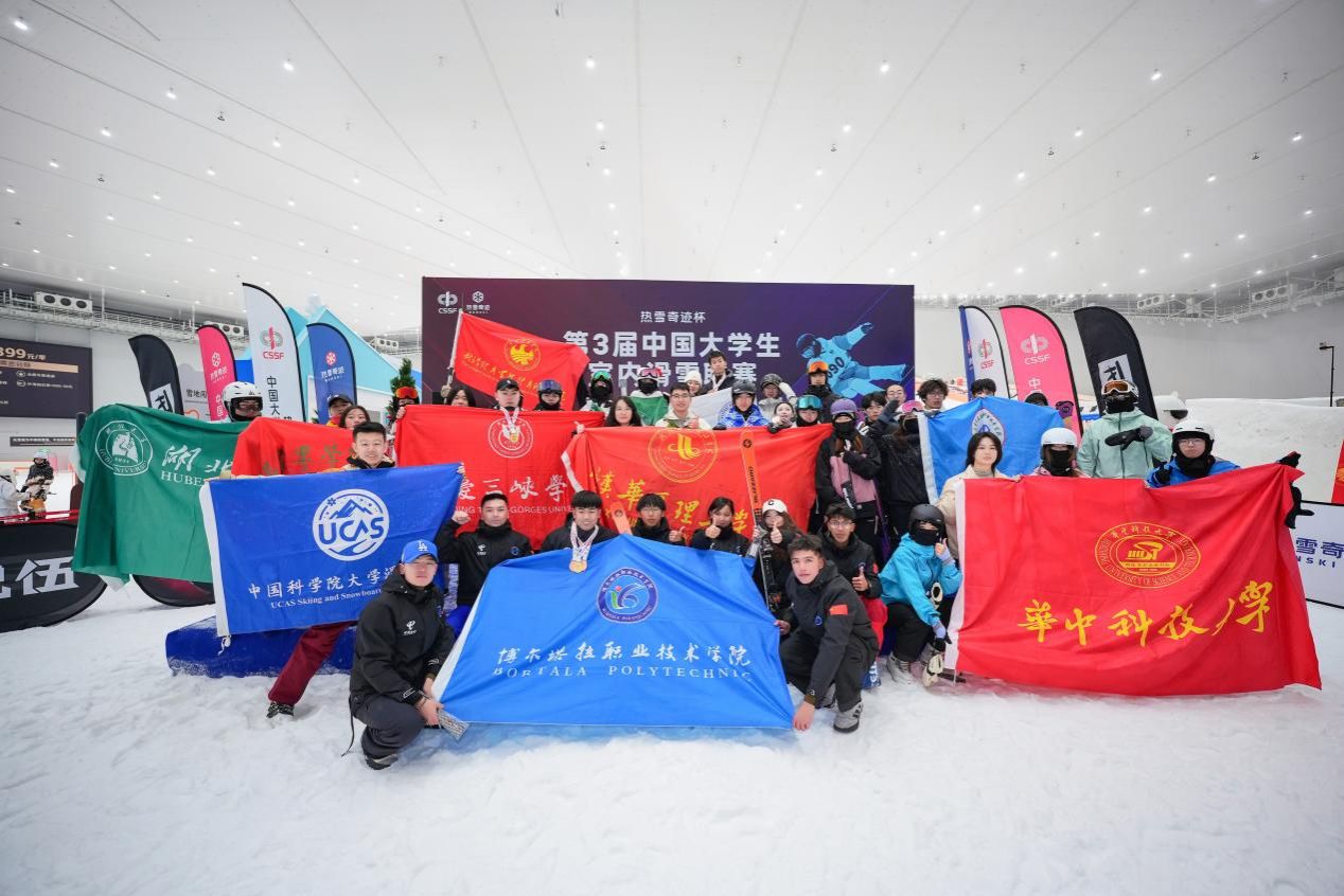 11月26至27日,第3届“热雪奇迹杯”中国大学生室内滑雪联赛在武汉热雪奇迹滑雪场举行。beat365体育学院代表队首次亮相即斩获佳绩,共揽下单板女子甲组季军、男子甲组第四和第五名,双板男、女甲组第八名,并荣获赛事“体育道德风尚奖”。