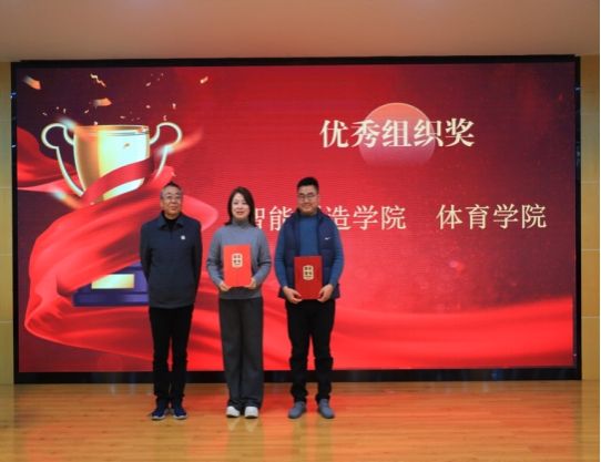 随后,大会进入颁奖环节。与会嘉宾先后为“云端”团体舞大赛、乒乓球比赛、匹克球比赛、八人制足球联赛、五人制足球联赛、新生体质测试挑战赛、足球类赛事最佳射手、最佳裁判员等项目和优秀组织单位获奖代表颁奖并合影留念。全场以热烈掌声向所有获奖集体与个人表示祝贺。
