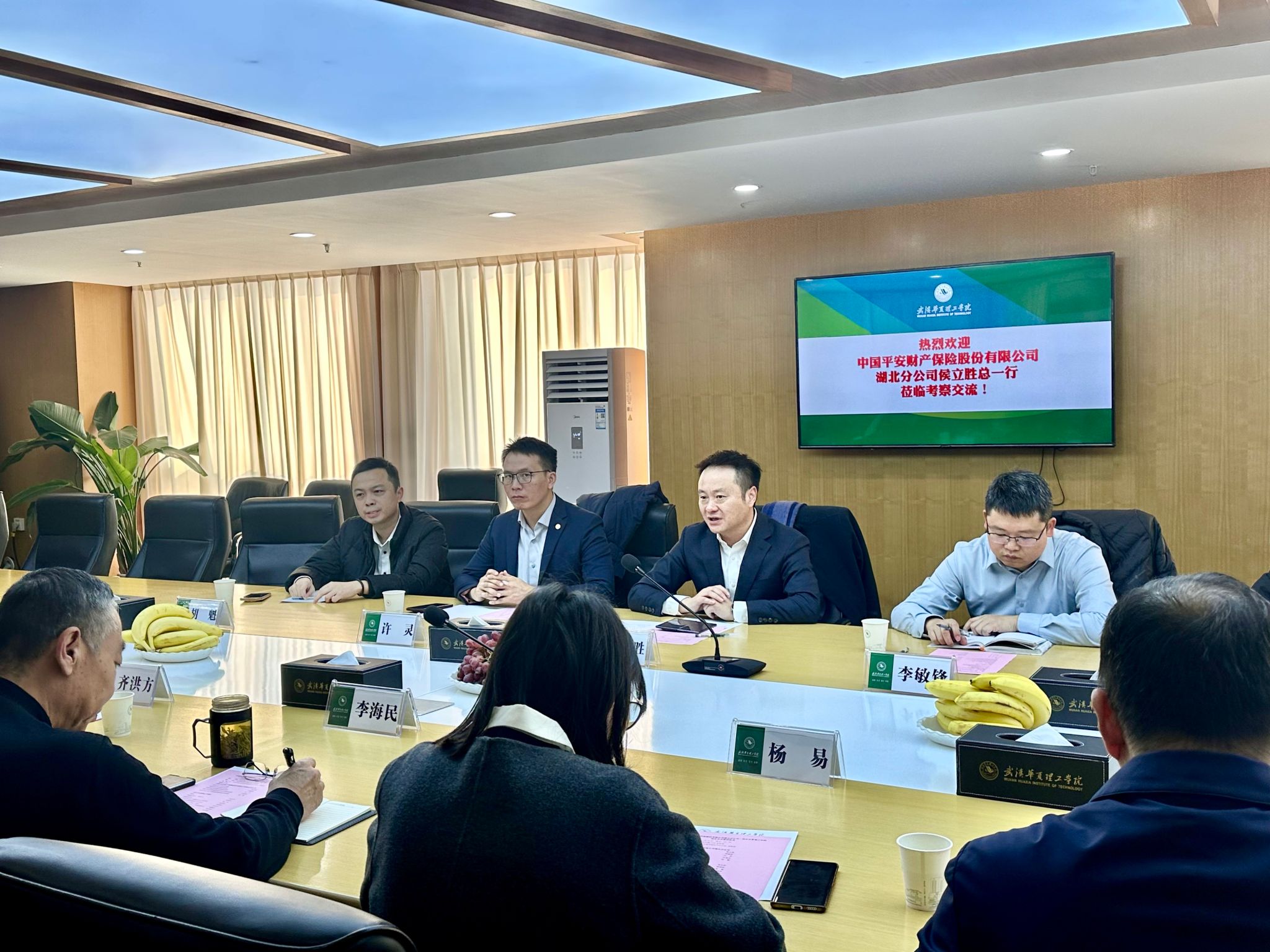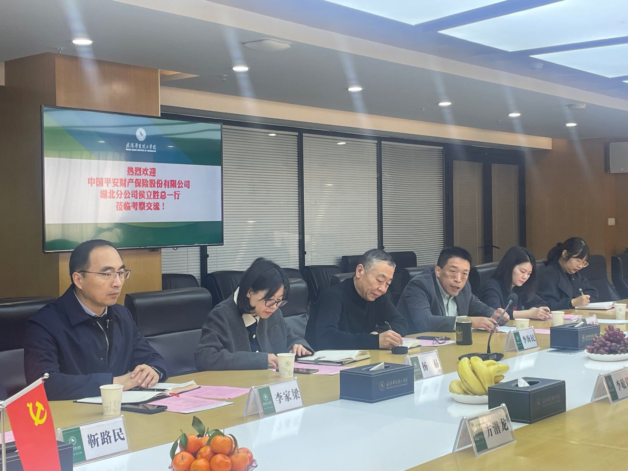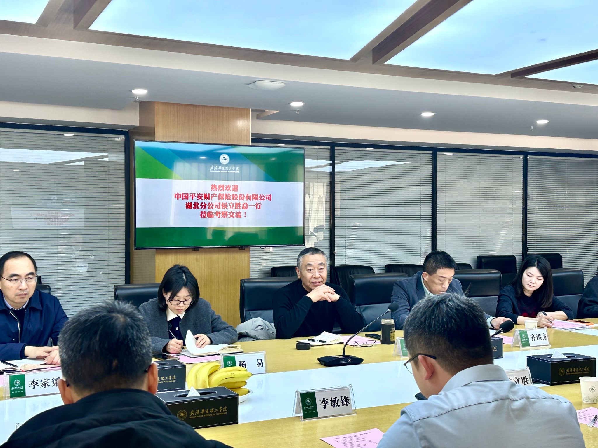 李海民代表学校致欢迎辞。他首先介绍了学校概况、学科专业建设及毕业生就业情况。他表示,很高兴此次与中国平安财产保险股份有限公司湖北省分公司开启战略合作,期待双方整合优势资源,共同培养高素质专业人才,推动毕业生就业高质量就业,为企业发展提供坚实的人才支持。
