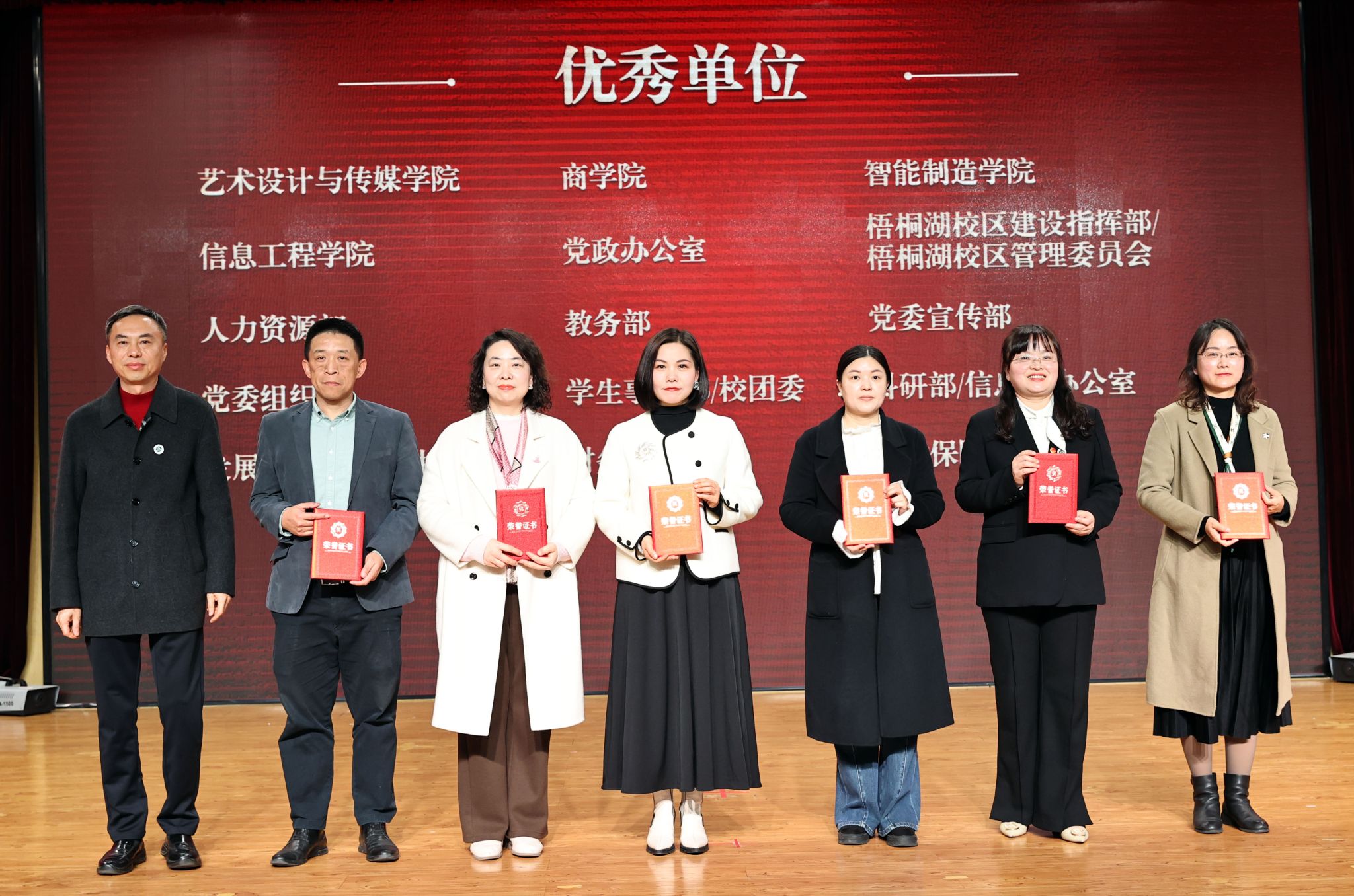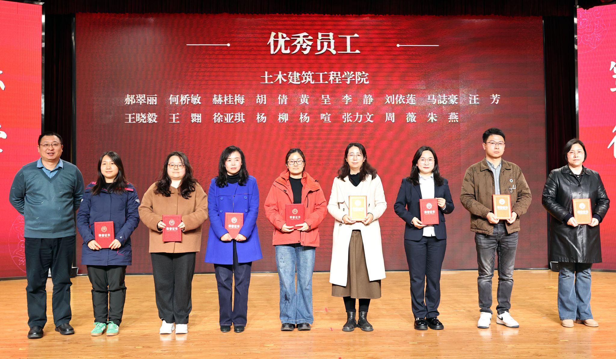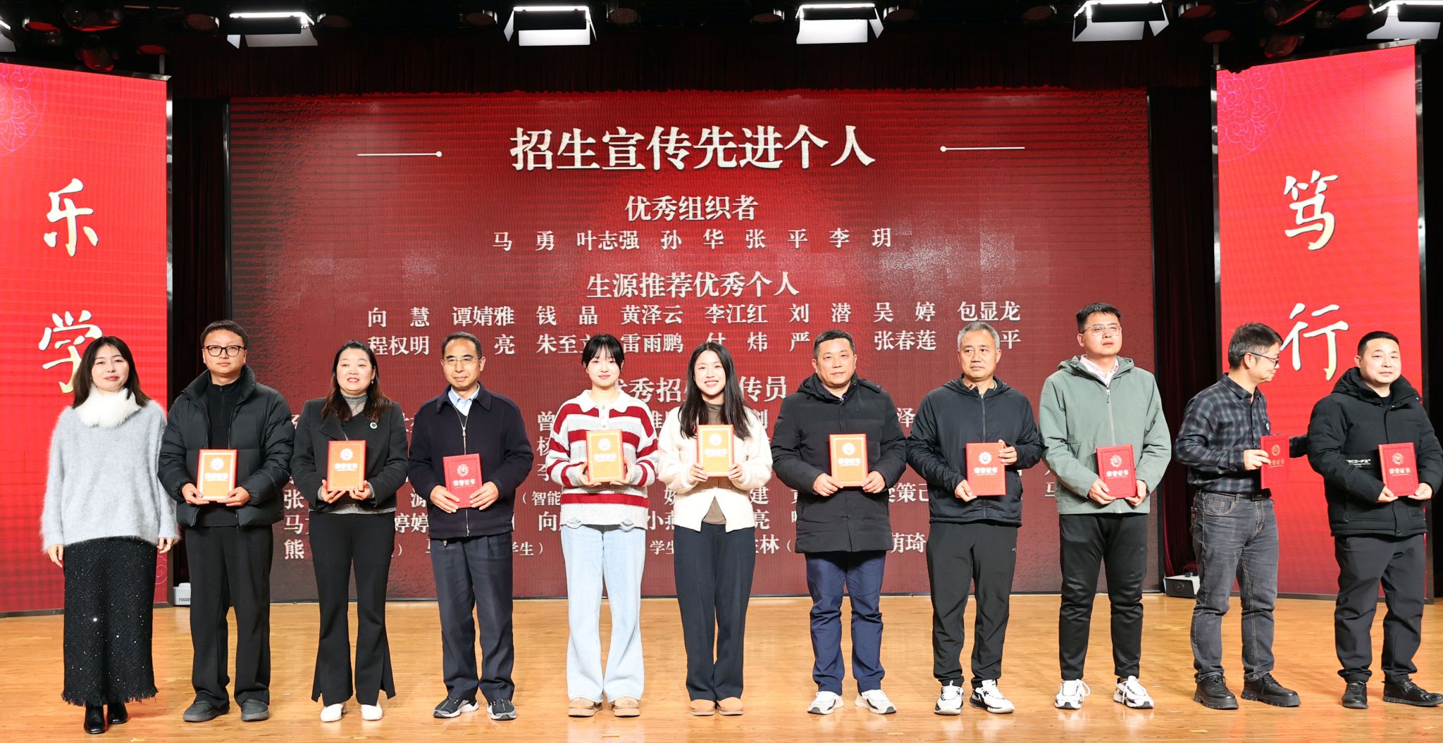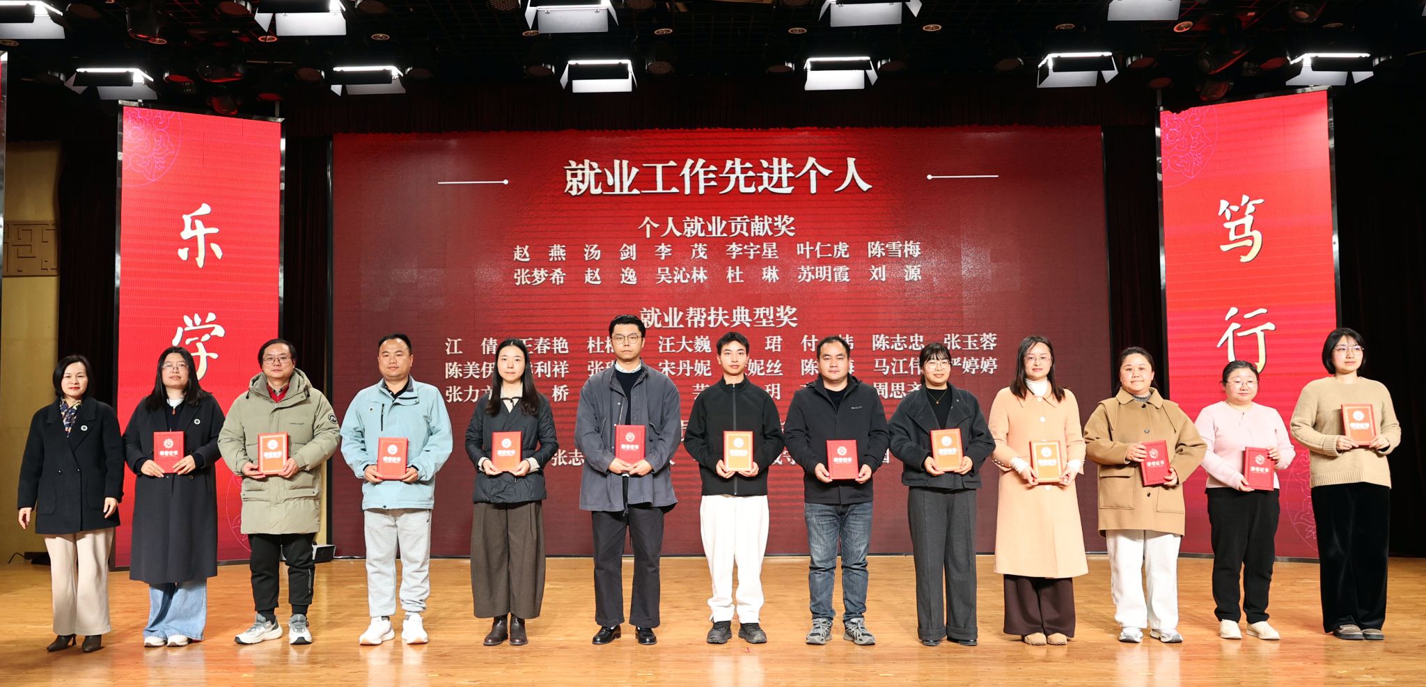 校领导依次为获得“就业工作先进个人”“职能部门支持奖”“就业工作先进单位”“工会积极分子”“优秀工会干部”“招生宣传先进个人”“招生宣传先进集体”“优秀员工”“优秀干部”“优秀单位”等荣誉的集体与个人代表颁奖。