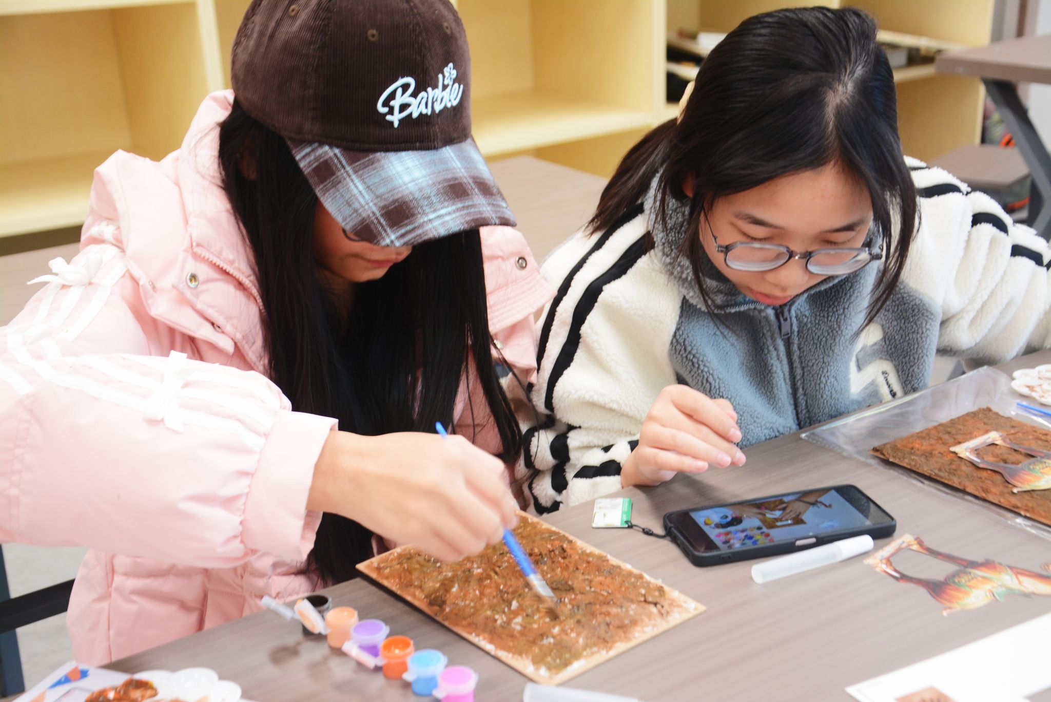 动手环节,同学们选取感兴趣的文物主题——或丰腴的仕女,或神秘的青铜人面,或绚丽的唐三彩,通过耐心地搭建立体背景、敷泥塑形、精心雕琢细节,原本平淡的纸板逐渐被赋予深邃的时空维度。活动现场,只见工具轻柔起落,目光专注凝视,抽象的史料知识在指尖转化为可触可感的体积与温度。随着时间的推移,一件件凝聚着个人理解与情感的“微型文物”在画面上挺立而起,虽静默无声,却仿佛诉说着千年的故事。
