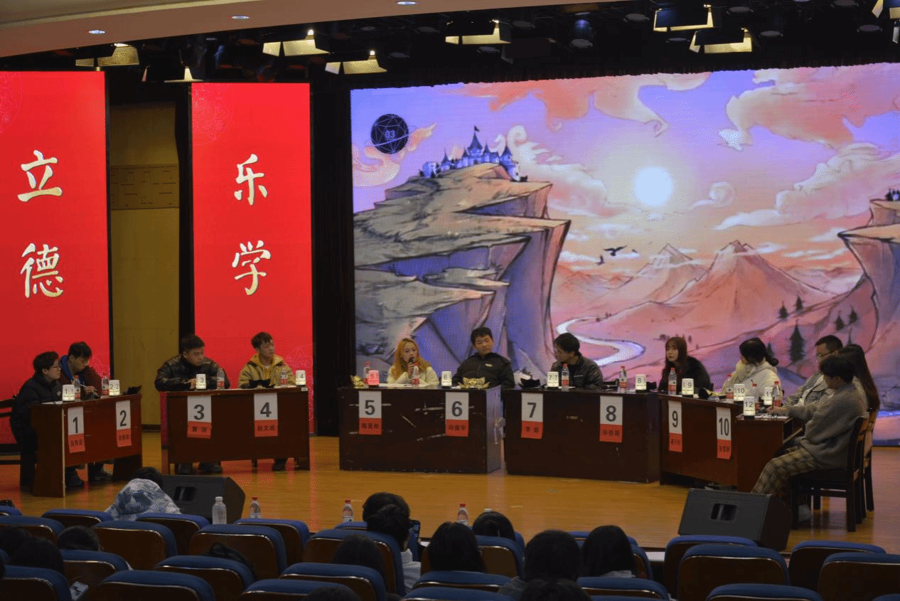 一场智慧与勇气的较量,一次知识与能力的提升,2023年12月23日下午,第四届狼人杀大赛总决赛在学术报告厅火热开赛,师生代表现场观摩,参赛的十二位选手蓄势待发。决赛分三轮进行,版型由到场学生观众和上届狼王随机抽取,按照总分高低决定比赛名次及最终优胜者。