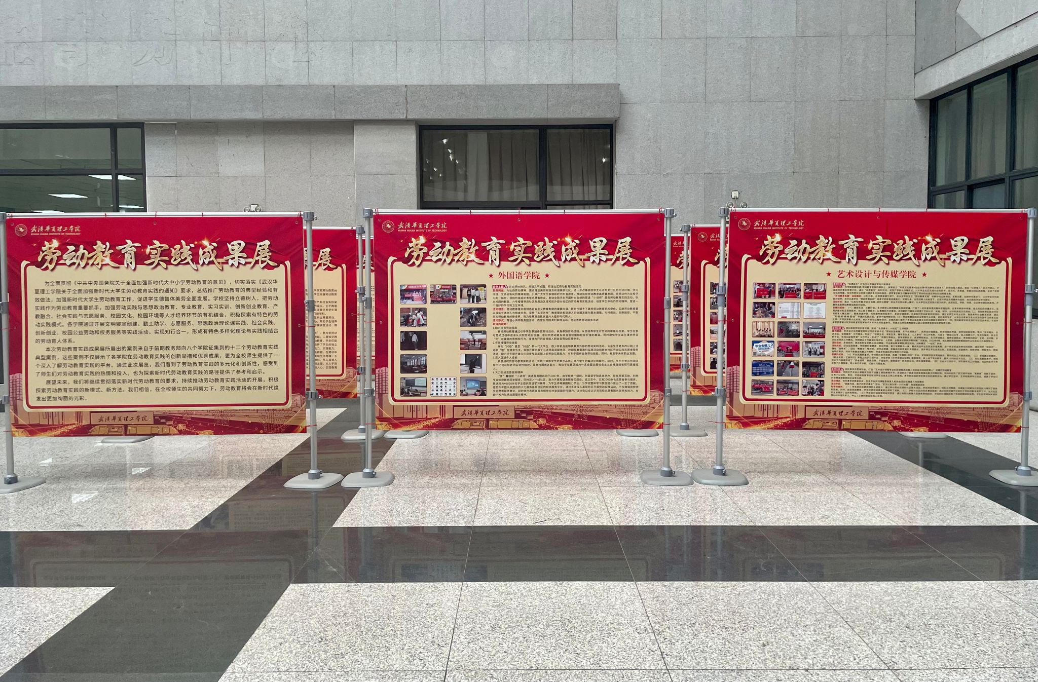 12月31日上午,由教务部主办的“劳动教育实践成果展”在综合楼大厅开展。本次展览汇集了艺术设计与传媒学院、智能制造学院、生物制药工程学院、外国语学院、商学院、体育学院、信息工程学院、土木建筑工程学院的十二个劳动教育实践典型案例。