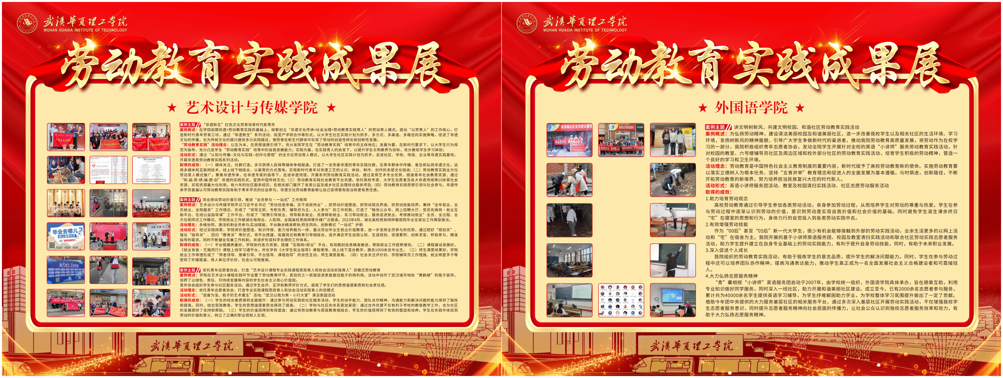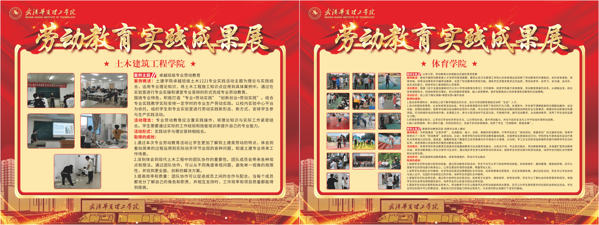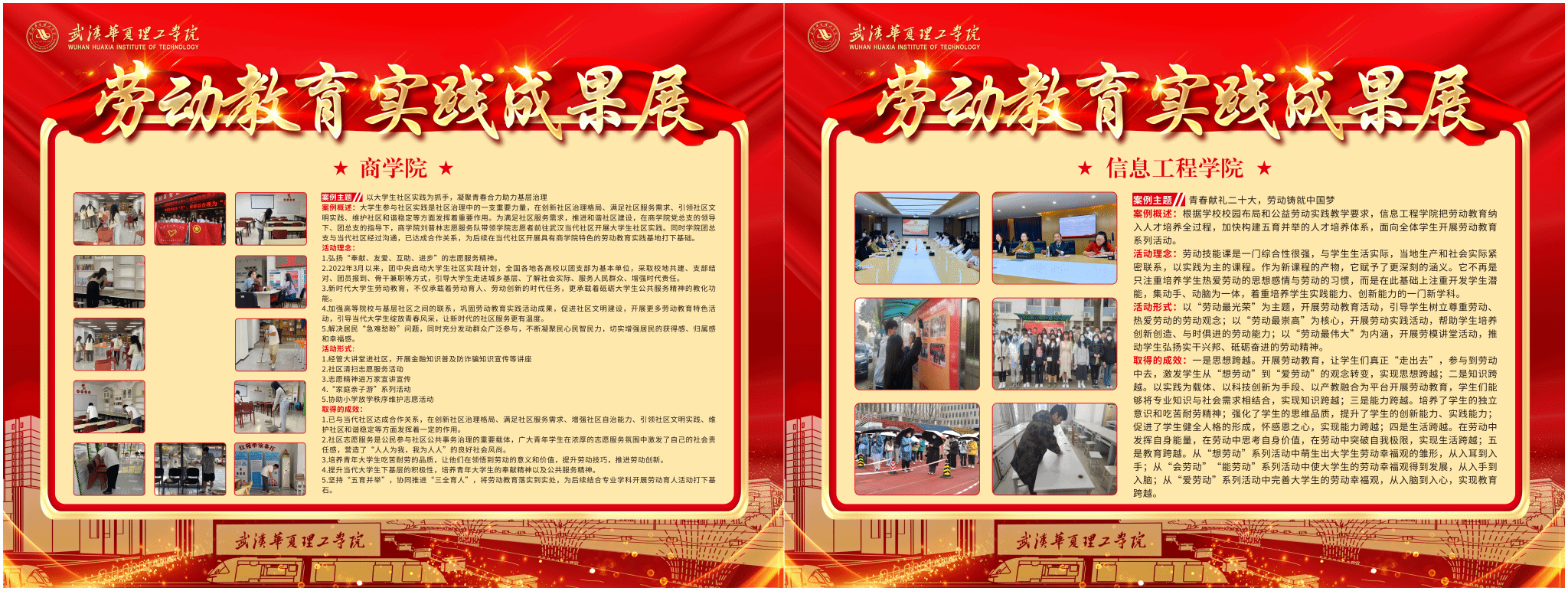本次所展出的典型案例涵盖了志愿服务、思想政治理论课实践、社会实践、创新创业、校园公益劳动和校务服务等实践活动,体现了各学院结合自身专业特色在劳动教育实践中的探索与创新,实现知行合一,形成了有特色的多样化理论与实践相结合的劳动育人体系。