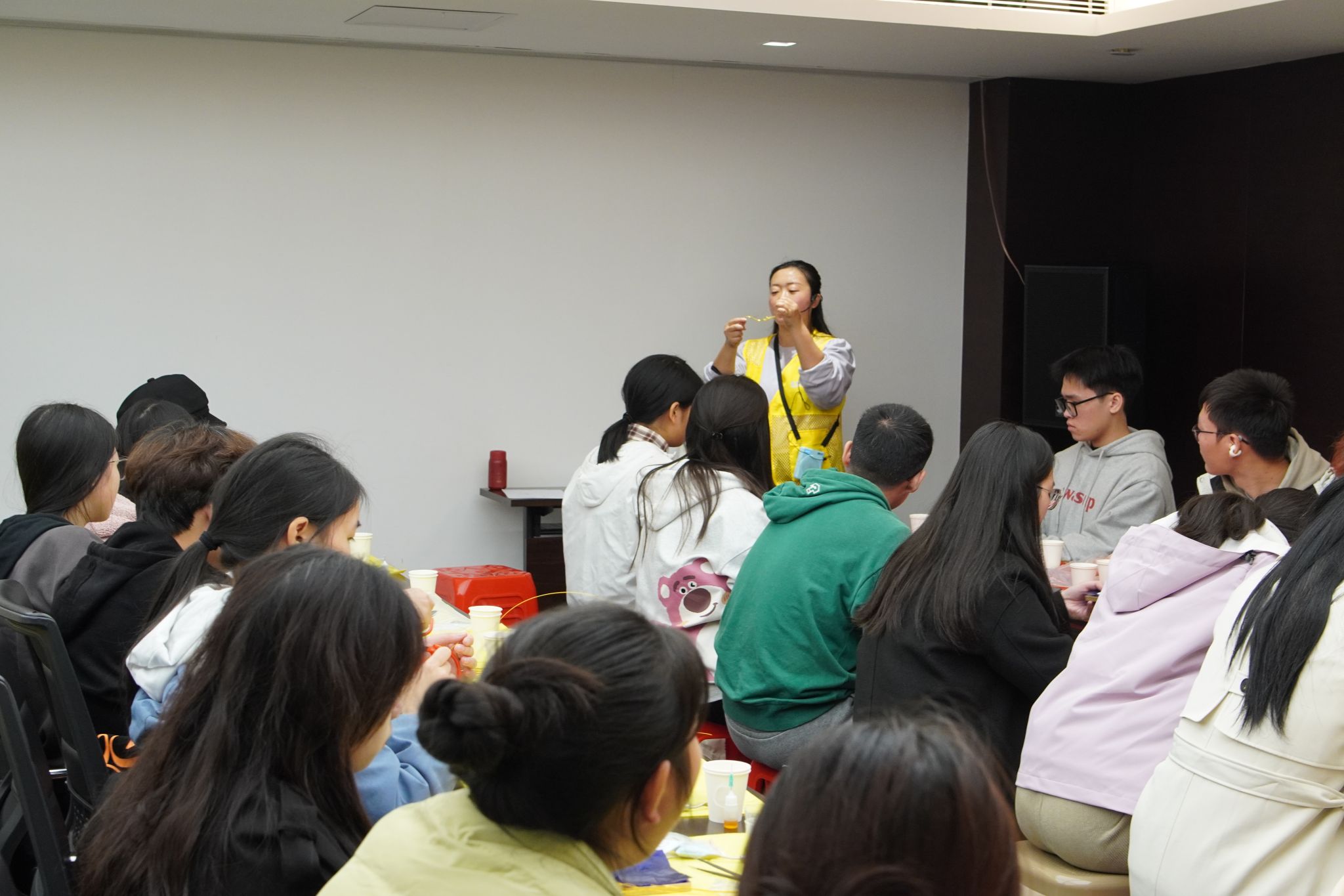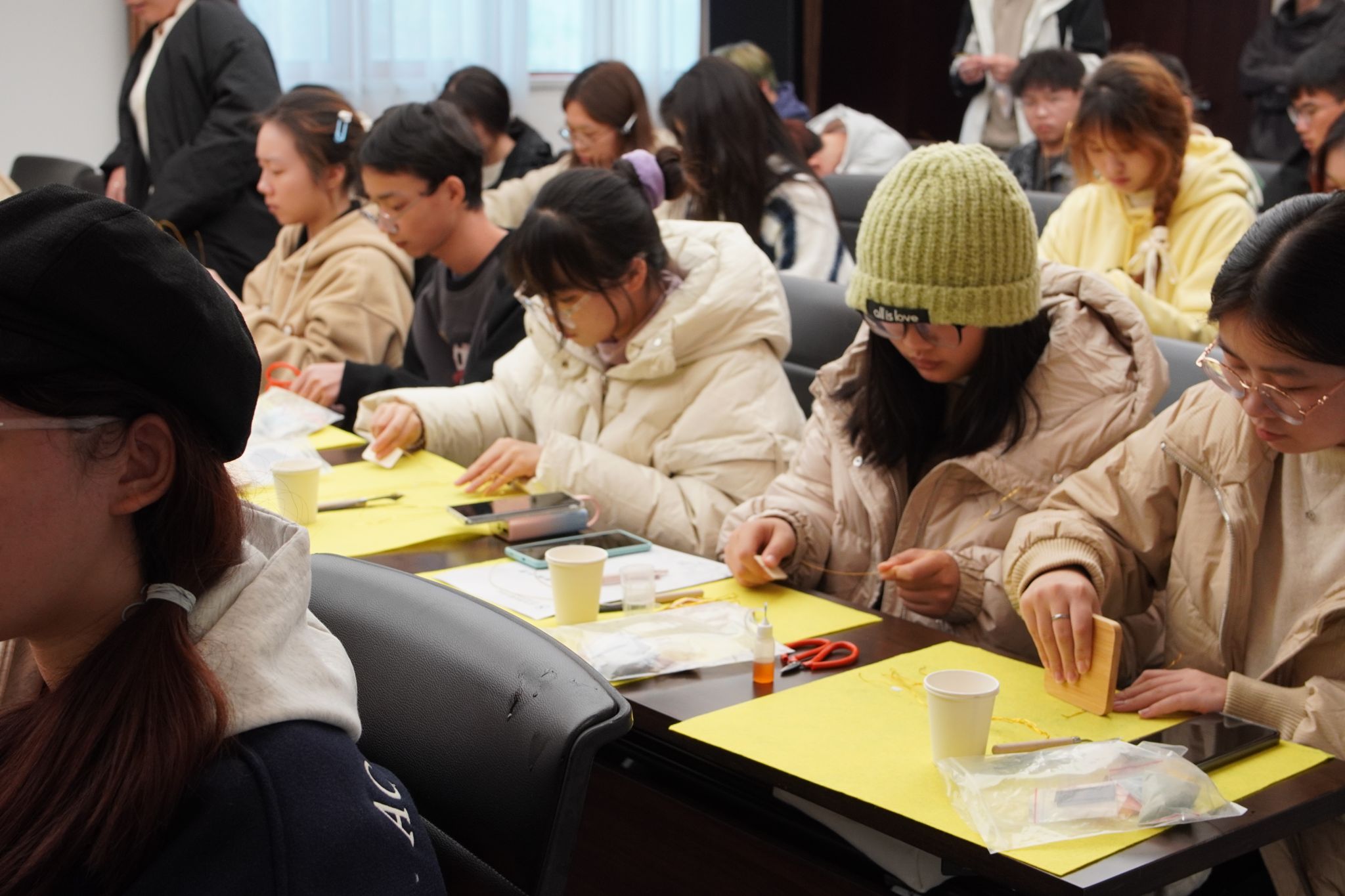 在掐丝珐琅手工制作环节,杨老师对由彩砂、金丝等构成的材料包进行了简洁明了的介绍。他鼓励学生们以参观的展品为灵感来源,勇于创新,设计出令自己满意的作品。学生们纷纷以爵、鼎、钺等传统器物为蓝本进行创作。