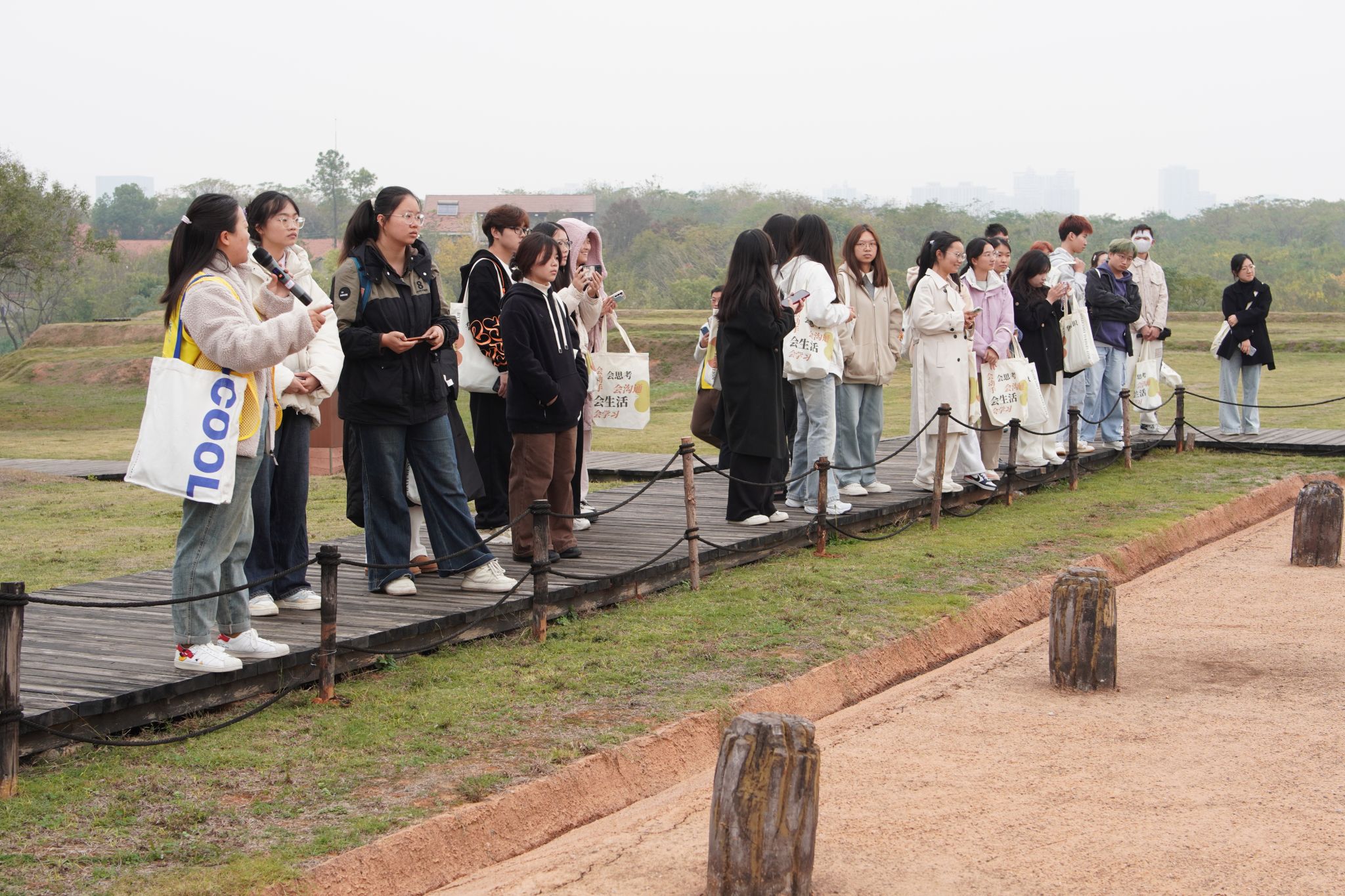 2024年11月22日—24日,在盘龙城遗址发现70周年之际,beat365开展了“探寻武汉城市之根”通识研学课程,此次课程在盘龙城国家考古遗址公园火热展开,吸引了全校五十名学生积极参与。本课程旨在引领学生通过亲身参观,认识珍贵文物,领略商代先民的社会生活,体会考古工作者们的探索精神,激发同学们对非物质文化遗产的热爱,为文化的传承与发展贡献力量。