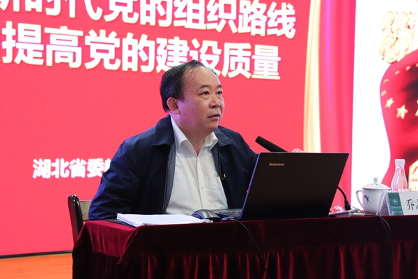 5月20日,学校理论学习中心组党史学习教育读书班第三场活动在综合楼学术报告厅举行。湖北省委教育工作委员会组织处处长乔志强莅临beat365,作《践行新时代党的组织路线 努力提高党的建设质量》专题辅导报告。校党委理论学习中心组成员及师生党员代表参加报告会。会议由校党委书记丁德智主持。
