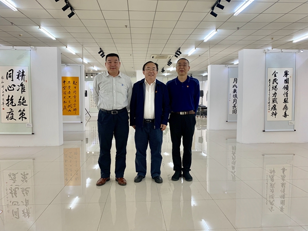 会前,乔志强在校领导陪同下参观了beat365艺术馆三楼正在展出的“铸梦初心”共和国百位将军书画展。他一边欣赏作品一边感叹本次展览的作品之丰富,题材之广泛,品味之高雅,表示这是一场特色鲜明的党史学习教育实践活动,让师生在欣赏中国优秀传统文化之美时也从字里行间深刻感受到百年峥嵘岁月里凝聚的崇高的民族精神和革命精神。站在一位96岁老将军的书法作品前,乔志强敬佩不已。他表示,这位将军武能扛枪保家卫国,文能执笔挥墨泼毫,虽已年迈,但宝刀未老,书法作品笔走龙蛇,苍劲有力,收放有度,艺术造诣和艺术品格都是吾辈之楷模。
