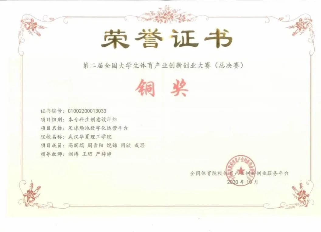 ·《足球场地数字化运营平台》:获全国大学生体育产业创新创业大赛本专科创意设计组铜奖