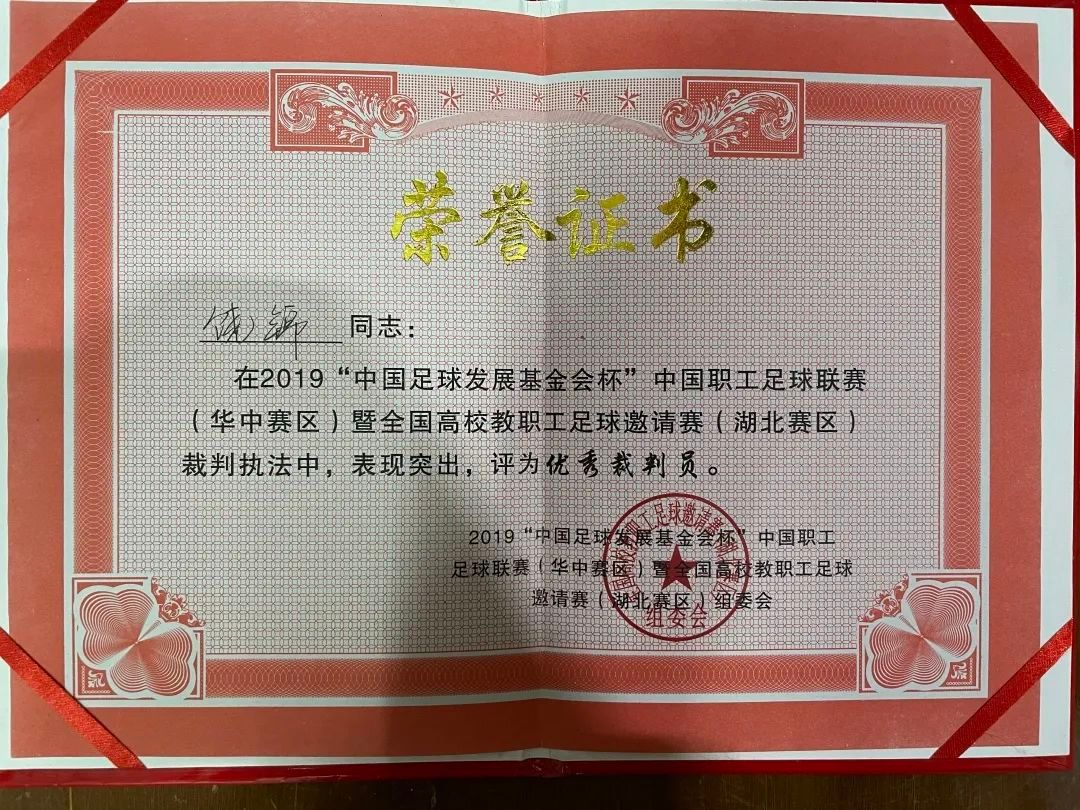 ·2019“中国足球发展基金会杯”职工足球联赛(华中赛区)暨全国高校教职工足球邀请赛(湖北赛区)“优秀裁判员”
