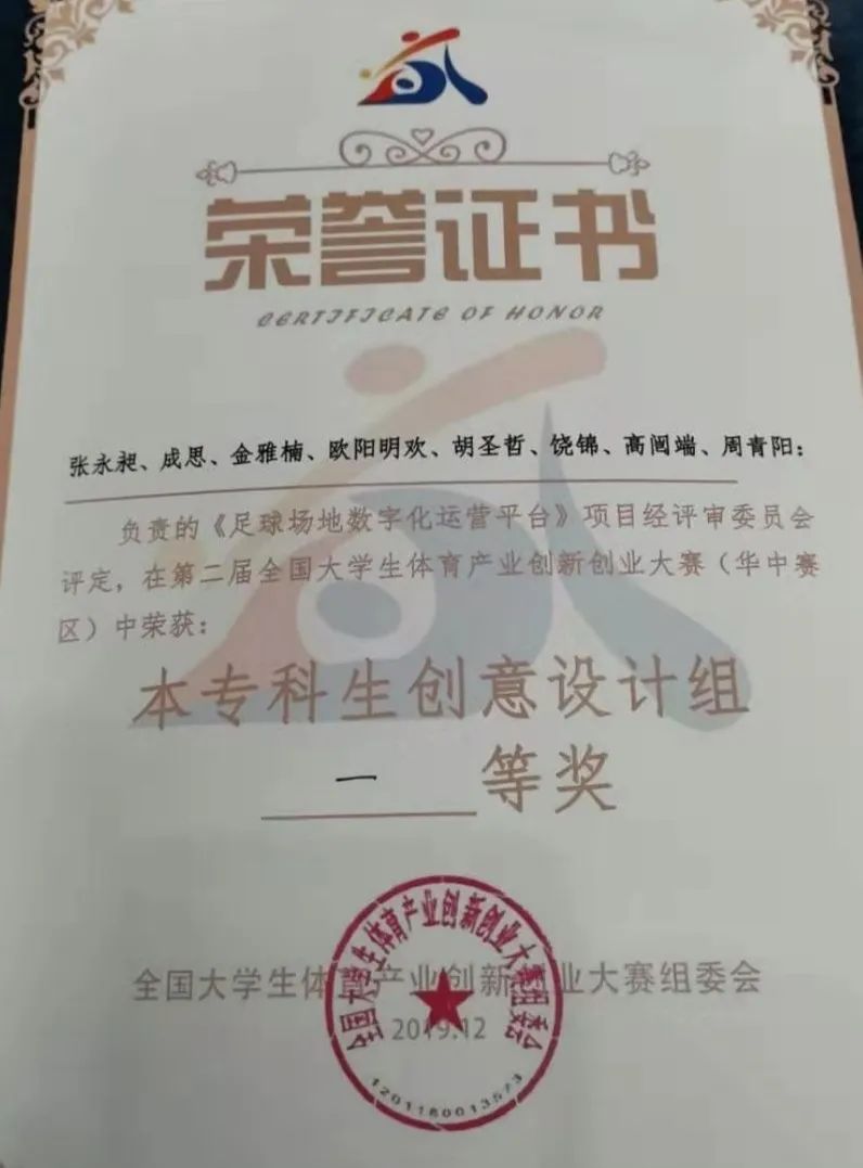 除了国奖之外,最让饶锦觉得骄傲的一个荣誉便是第二届全国大学生体育产业创新创业大赛(华中赛区)本专科生创意设计组一等奖。