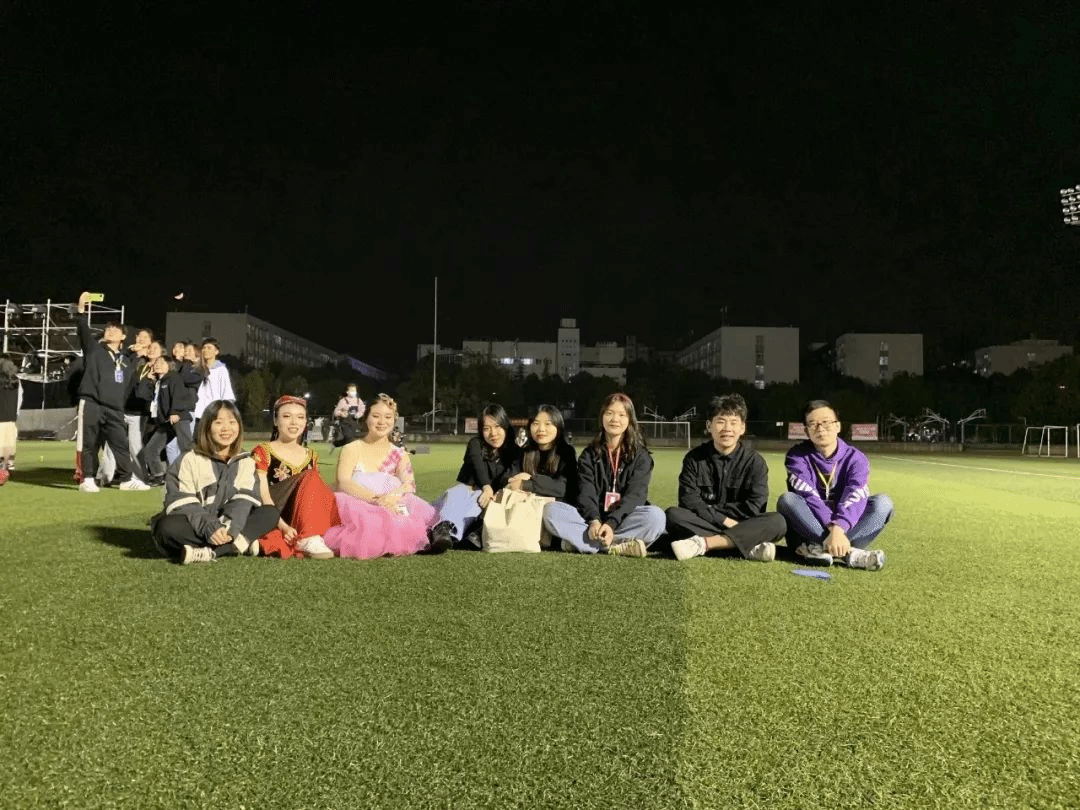 作为艺术团团长带领学弟学妹们布置晚会(右三)