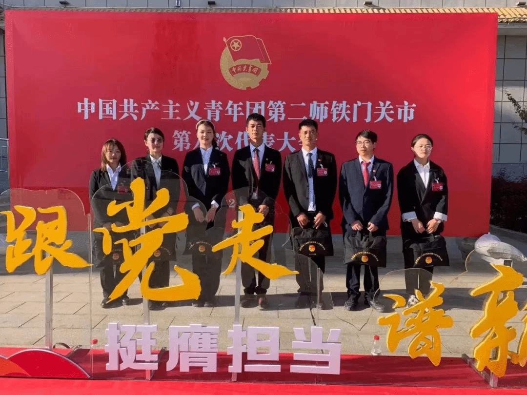 参加共青团第二师铁门关市第八次代表大会(左三)