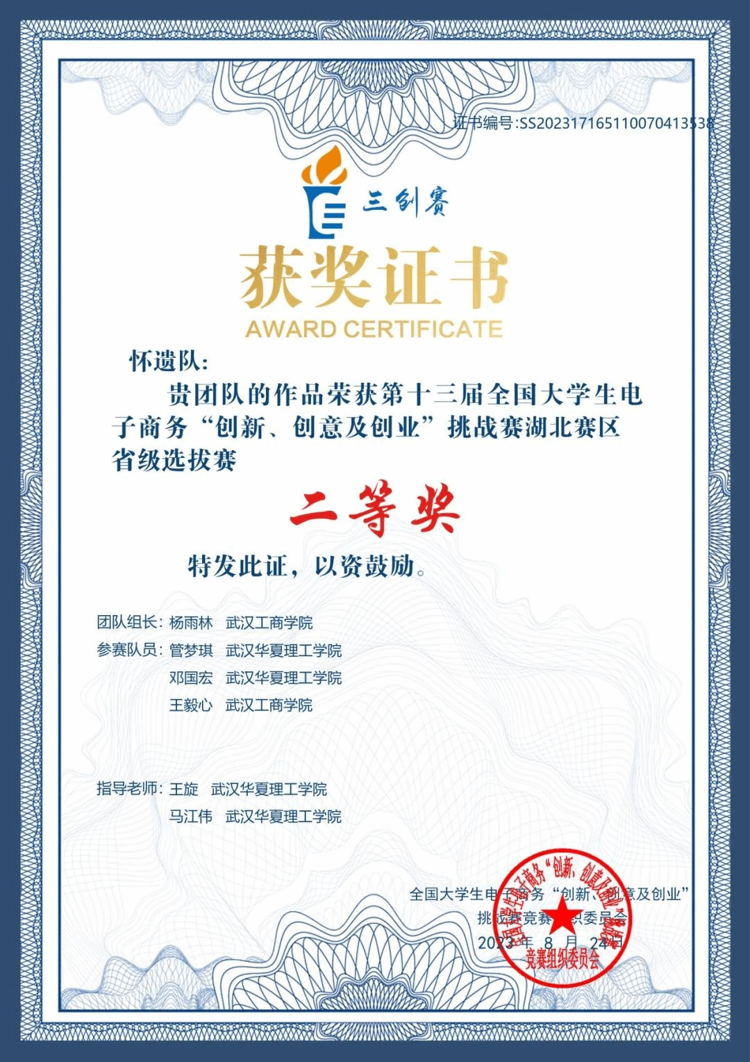 湖北省第十三届电子商务三创赛省二等奖