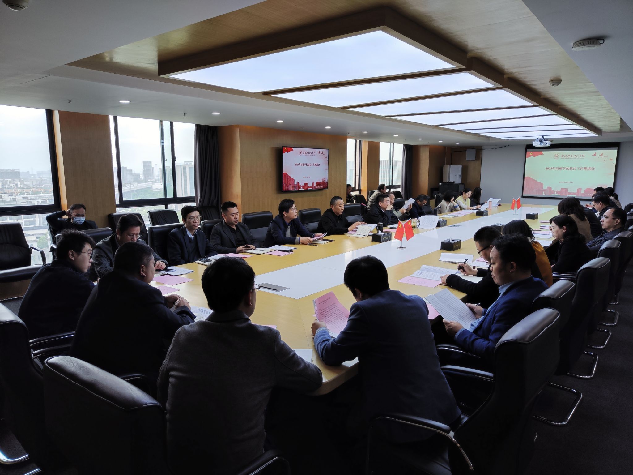 4月24日上午,2023年清廉学校建设工作推进会暨抵制违规吃喝集体座谈会在综合楼1402会议室召开。校长吴永桥,党委书记丁德智,副校长丁成忠,校长助理胡水兵、赵杨、李海燕、刘美云,财务总监谭婧及校属各单位负责人参加会议。会议由学校党委副书记、纪委书记、副校长李海民主持。