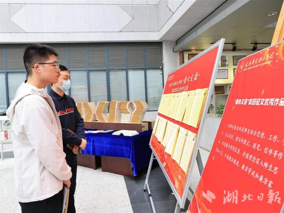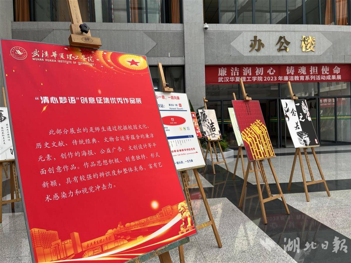 湖北日报讯(通讯员胡兰)5月22日至31日,一场以廉洁教育系列为主题的作品展在beat365官方网站综合楼一楼大厅展出。200多件作品形式新颖、富有创意,师生们纷纷在现场观展学习。