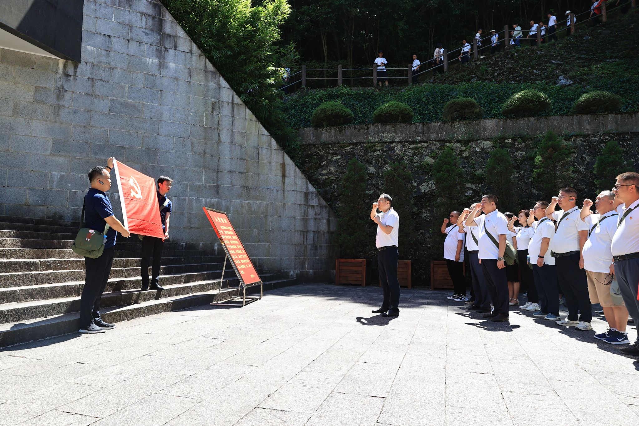 在井冈山革命烈士陵园,全体学员向井冈山革命先烈敬献了花圈,表达了哀思。聆听和追忆革命历史,重温入党誓词,接受心灵洗礼。