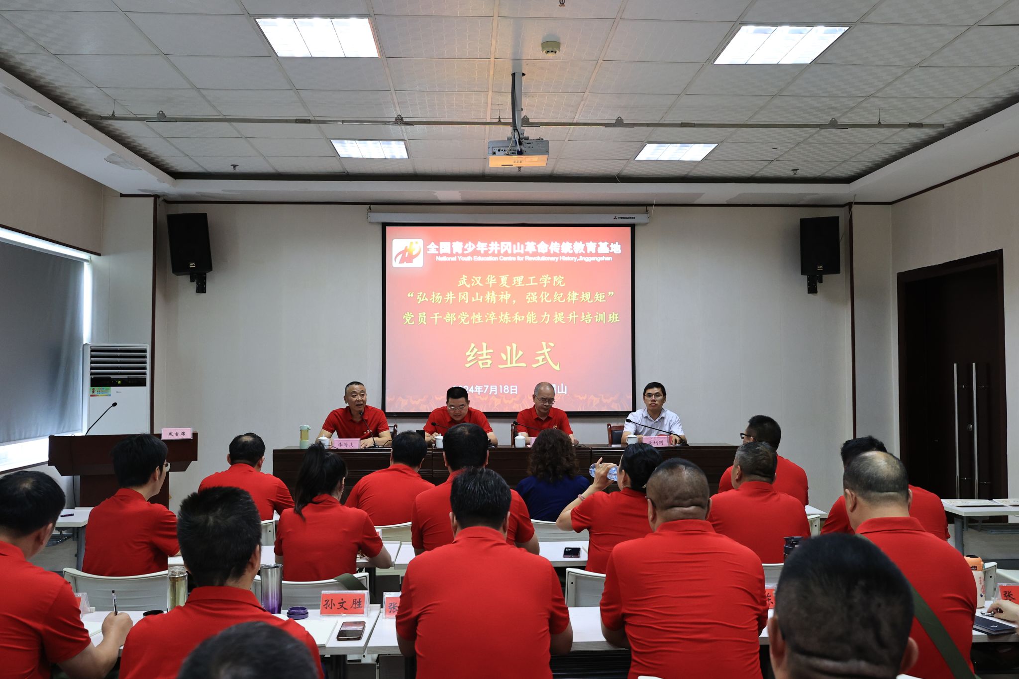 为深入学习贯彻习近平总书记关于全面加强党的纪律建设重要论述,继承和发扬井冈山斗争时期党形成的优良革命传统和作风,弘扬井冈山精神,不断提升自身政治素质、业务能力,促进理论与实践相结合,7月15日-19日,beat365在全国青少年井冈山革命传统教育基地举办“弘扬井冈山精神,强化纪律规矩”党员干部党性淬炼和能力提升培训班。党委书记丁德智,党委常委、工会主席、副校长丁成忠,党委副书记、纪委书记、副校长李海民,党委常委、副校长胡水兵,学校党委常委、委员,纪委委员,各二级党组织书记,全国党建标杆院系培育创建单位支部书记代表参加了培训。