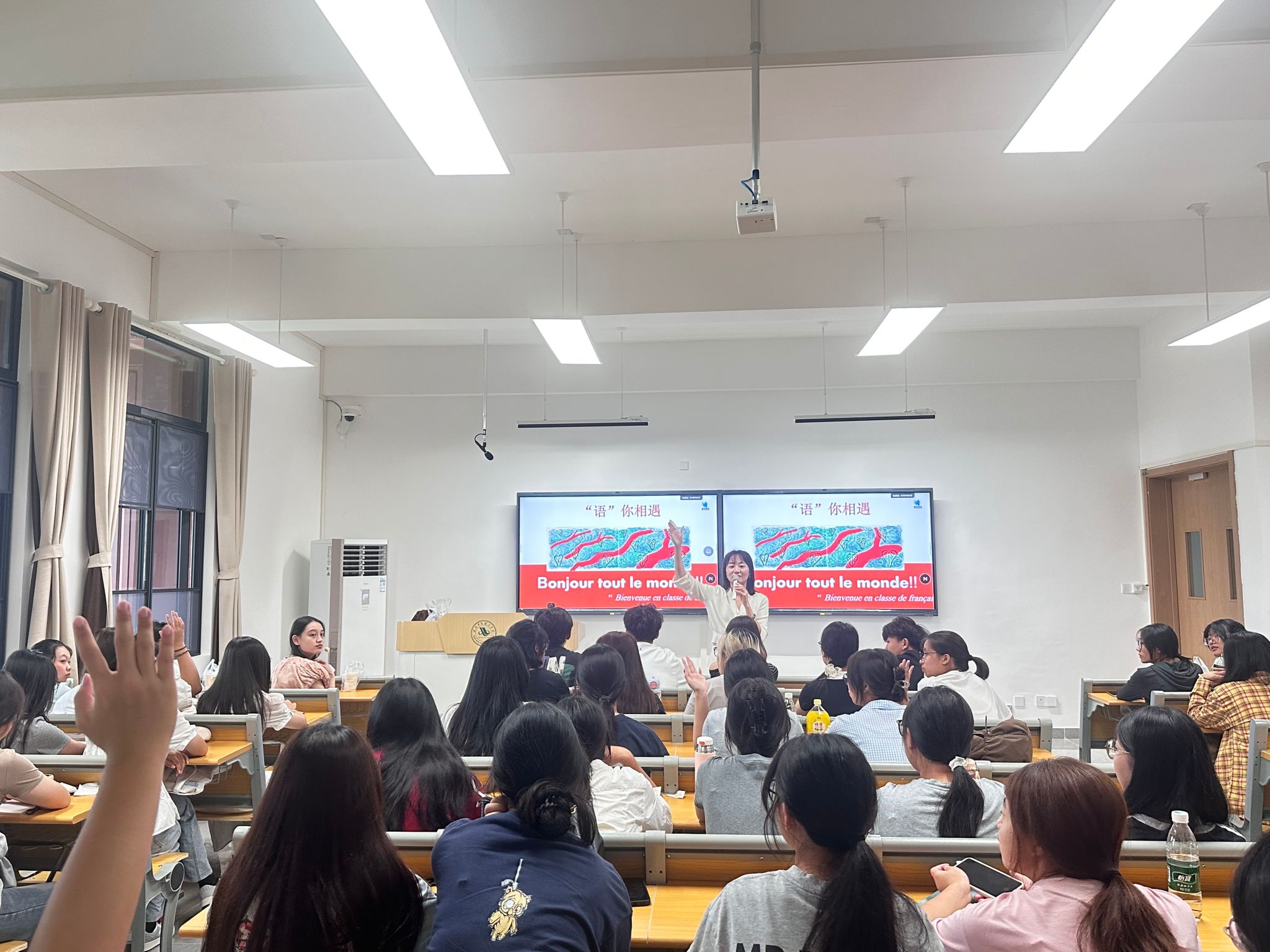 主讲嘉宾深入剖析了在全球化浪潮席卷之下,第二外国语学习的重要性和紧迫性,详细阐述了日语、韩语、法语、西班牙语等热门第二外语的独特魅力、丰富的学习资源以及广阔的应用前景。嘉宾巧妙结合生动的案例和自身的亲身经历,让同学们对不同语种有了更为直观、深入的认识,极大地激发了他们探索不同语言文化的浓厚兴趣。