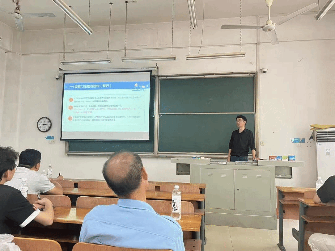 为保障校园门店服务质量,营造“稳定、祥和、平安”的校园学习生活环境,产业运营中心于2023年5月19日,组织学校所有门店负责人集中开展“门店规章制度解析及安全经营注意事项”学习活动(第九期),产业运营中心文汉宇、党委保卫部消防科桑威、后勤保障部校园管理服务中心范向阳、柳雄峰组成专业讲师团集中分享讲授。继续教育学院副院长刘雪丽、继续教育学院产业运营中心主任周丽红参加培训交流活动。