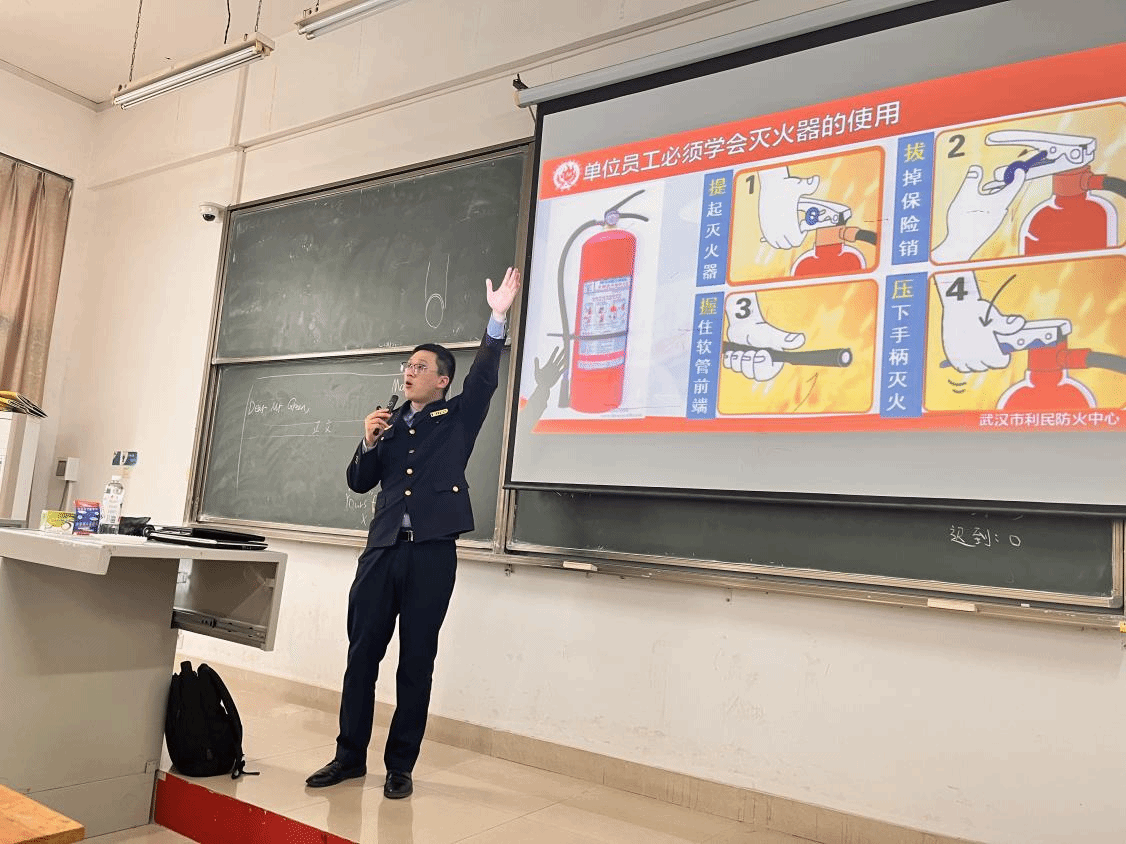 会议首先由武汉市利明消防中心邓鹏讲解消防安全知识,从消防隐患详解到实例案件剖析,结合消防器材介绍及实操教学,进一步加强了参会人员消防意识。