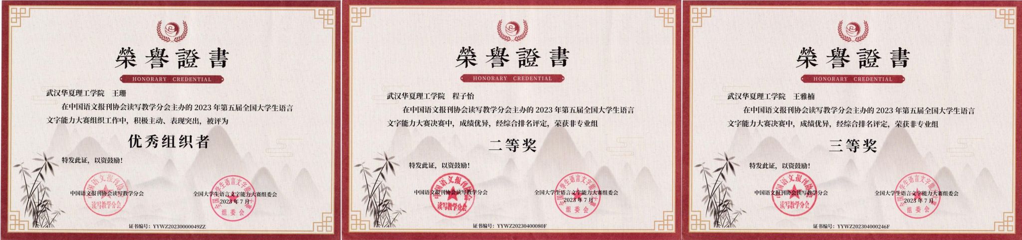 “全国大学生语言文字能力大赛”由中国语文报刊协会读写教学分会主办,旨在响应国家通用语言文字知识普及和教育工作,推动国家通用语言文字的规范化、标准化。经过多年赛事积累与沉淀,全国大学生语言文字能力大赛被列入2023年中国高等教育学会高校竞赛评估与管理体系研究专家工作组发布的《2023全国普通高校大学生竞赛分析报告》观察目录,影响力进一步提升。