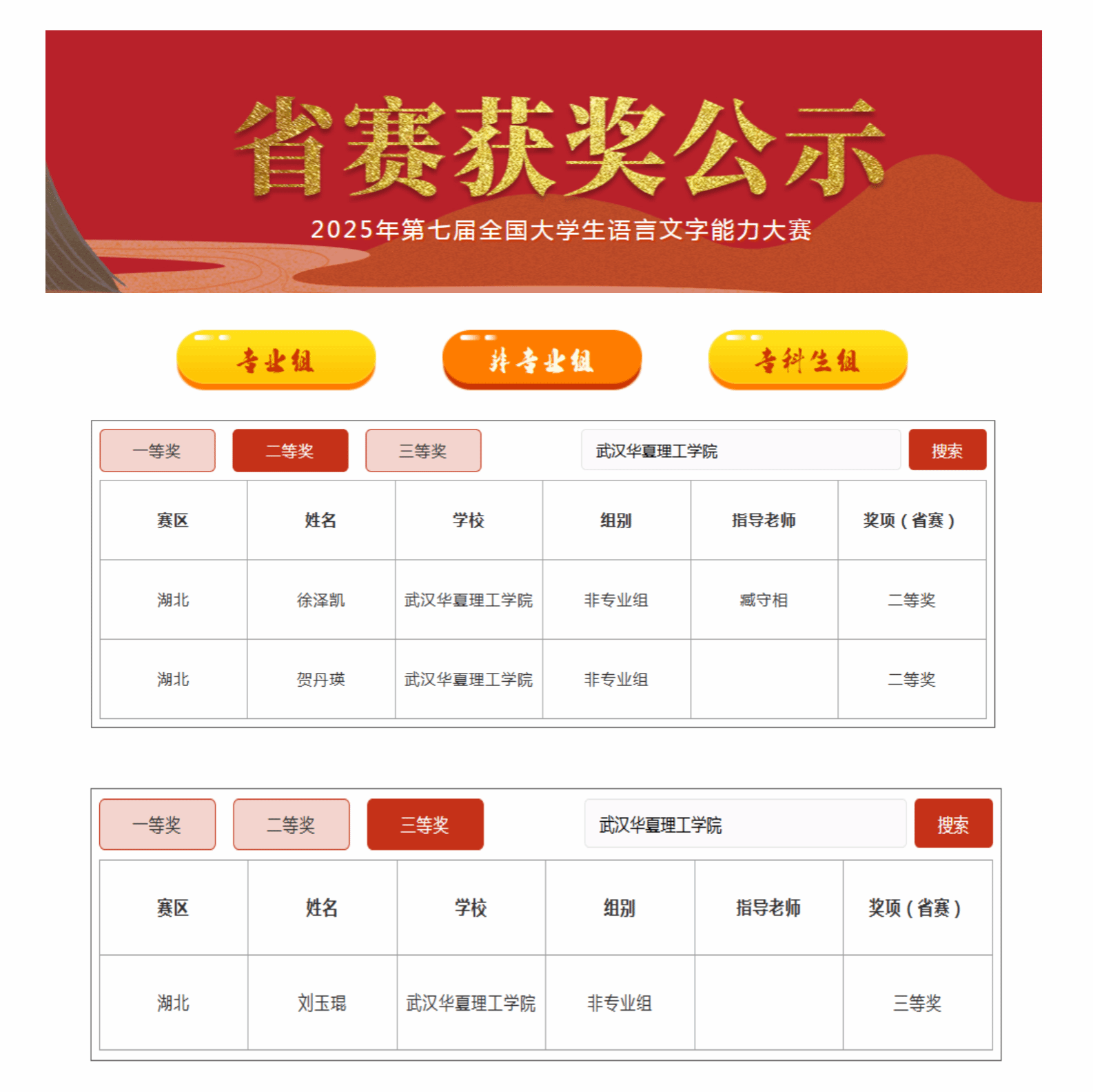 近日,2025年第七届全国大学生语言文字能力大赛组委会公布省赛获奖结果,beat365学子获非专业组二等奖2项,三等奖1项,并入围全国决赛。