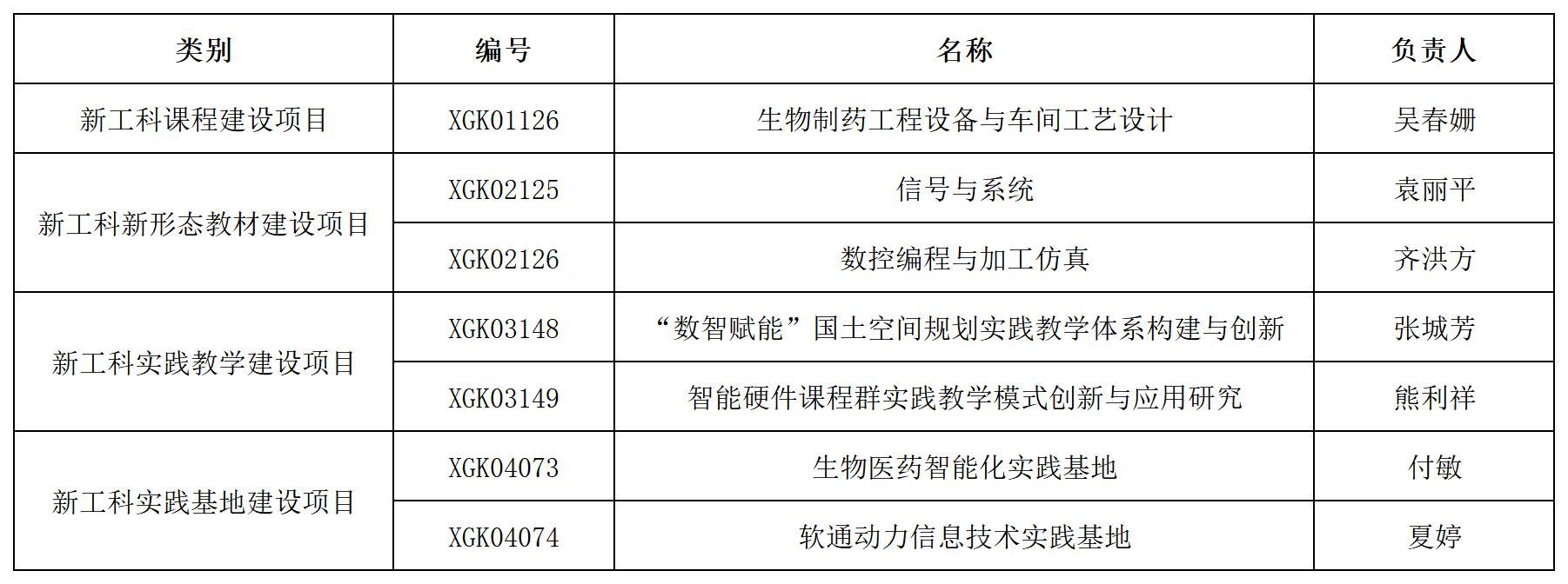 其中教师吴春姗的《生物制药工程设备与车间工艺设计》成功获批为“新工科课程建设项目”;袁丽平的《信号与系统》、齐洪方的《数控编程与加工仿真》获批为“新工科新形态教材建设项目”;张城芳的《“数智赋能”国土空间规划实践教学体系构建与创新》、熊利祥的《智能硬件课程群实践教学模式创新与应用研究》被纳入新工科实践教学建设立项名单;付敏的《生物医药智能化实践基地》、夏婷的《软通动力信息技术实践基地》获批为“新工科实践基地建设项目”。此次获批的7个项目,不仅聚焦于数字化智能化背景下的课程与课程资源建设,还着重通过实践教学项目与基地的建设,全面培养学生的工程实践能力与创新能力。